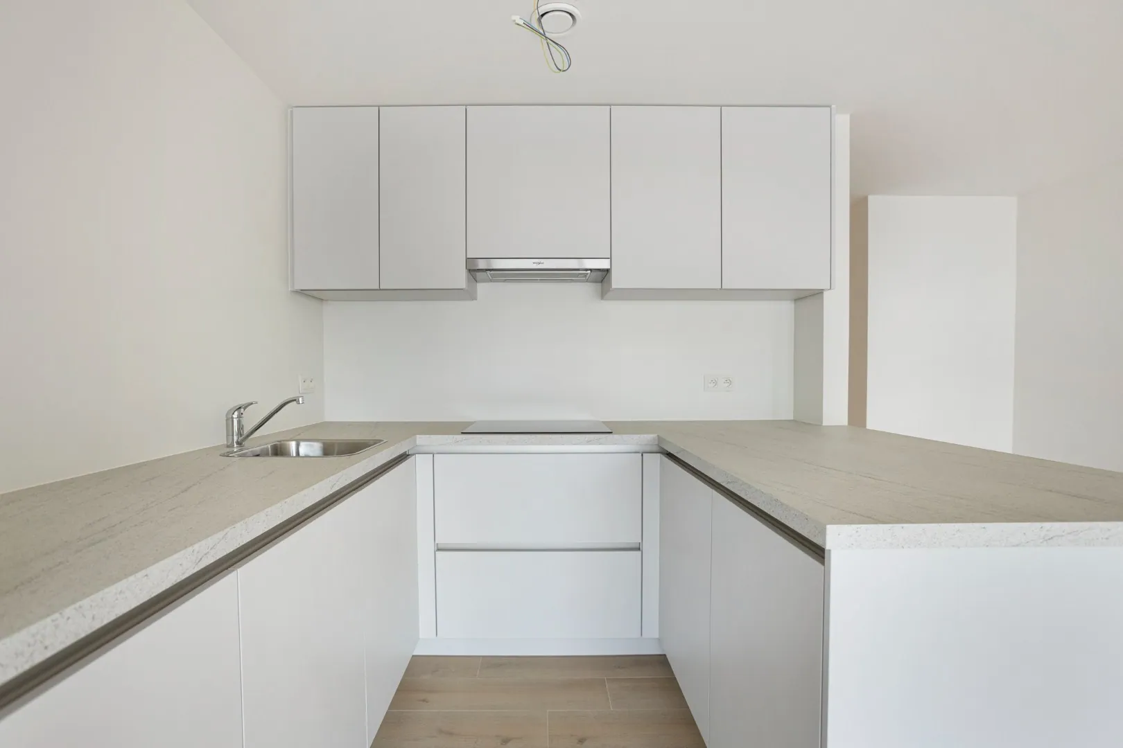 De volledig uitgeruste open keuken heeft een groot aanrecht. De nachthal met bureau en ingebouwde kast brengt je naar twee volwaardige slaapkamers, de badkamer en het aparte toilet.