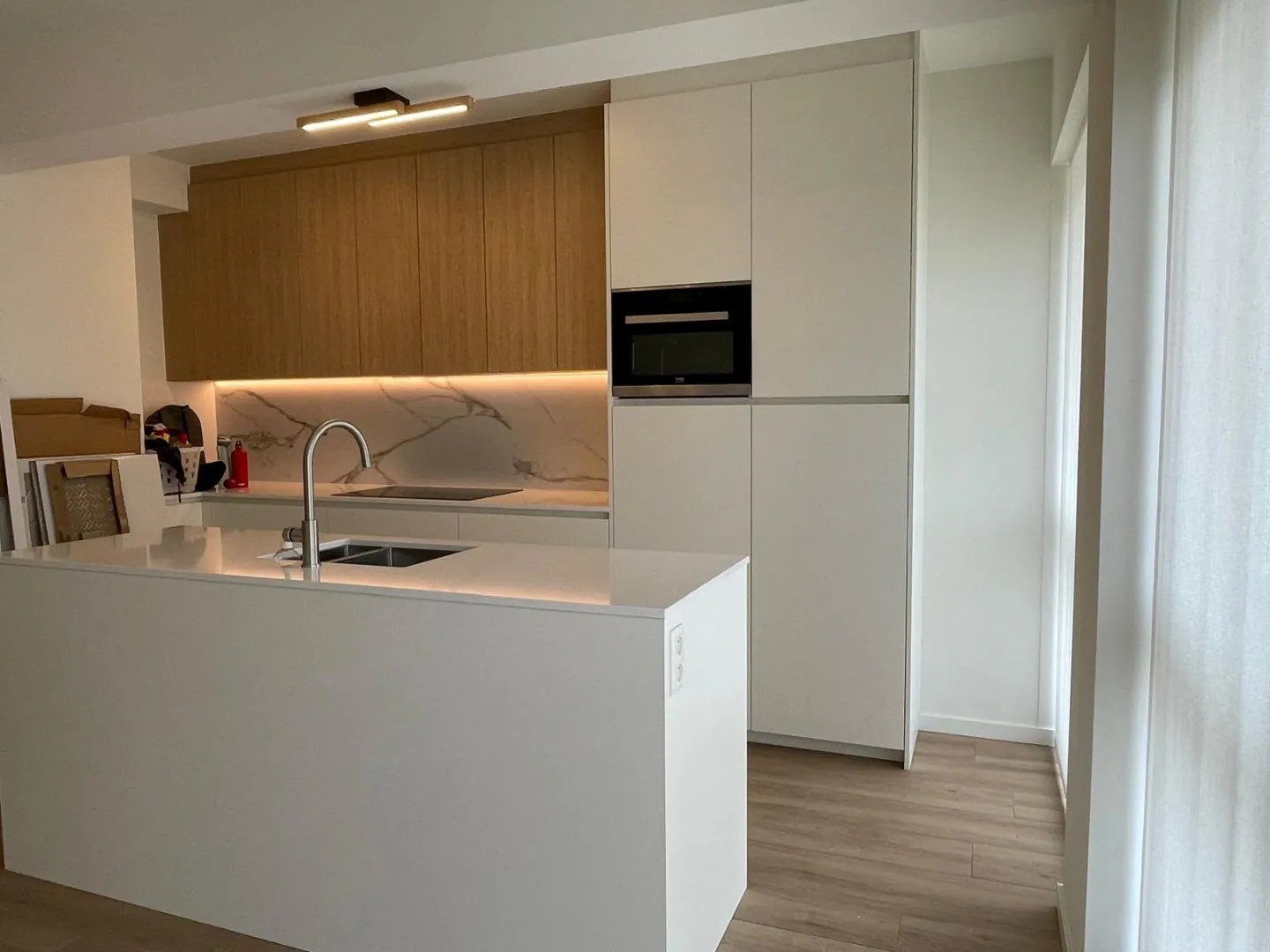 - Half open keuken voorzien van alle nodige toestellen. De keuken is ruim, praktisch, kwalitatief en geeft een unieke aangename bijzondere beleving voor iedere keukenprins of keukenprinses!