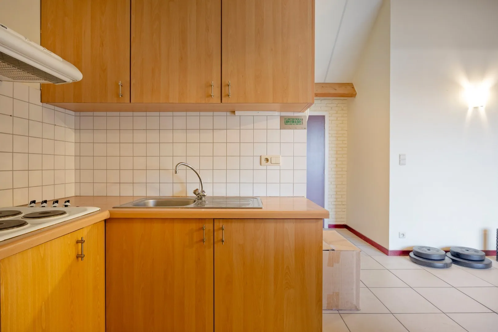 Het appartement bevindt zich op de tweede verdieping (geen lift). Via de inkomhal heb je toegang tot een handige berging en de ruime, lichtrijke woonkamer met aansluitend een open keuken. Vanuit de woonkamer bereik je de slaapkamer en de badkamer, uitgerust met ligbad, toilet en wastafel.