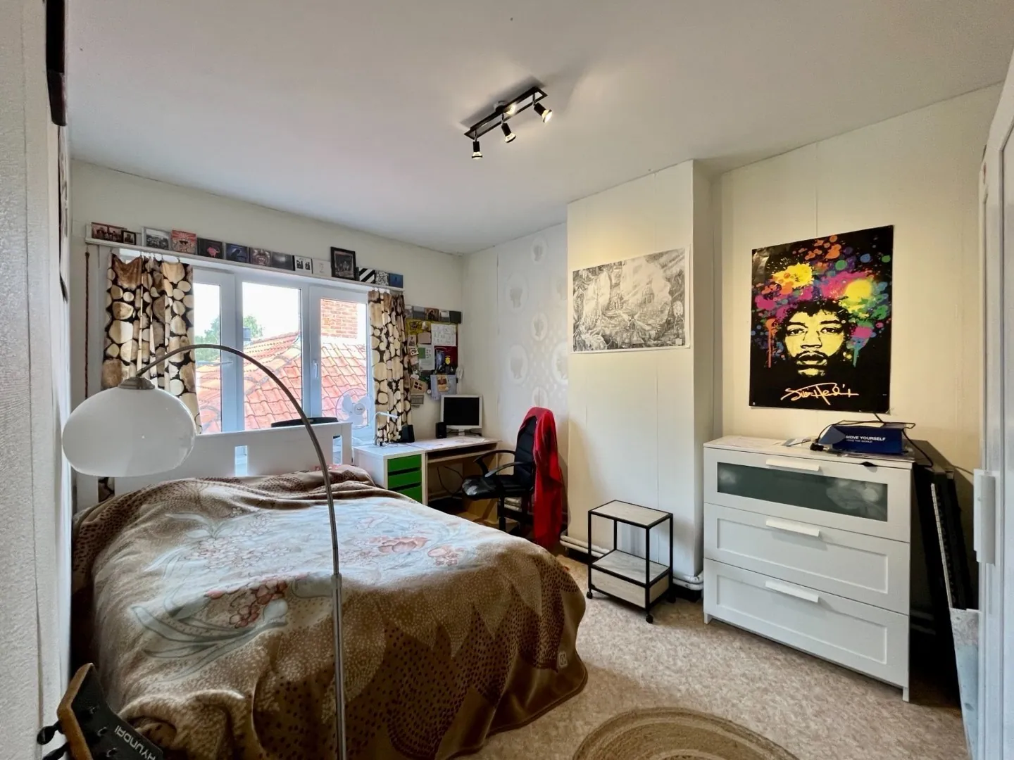 Aan de voorzijde is er een kleine voortuin met lange oprit naar de garage. Hier is het mogelijk meerdere auto's te parkeren.