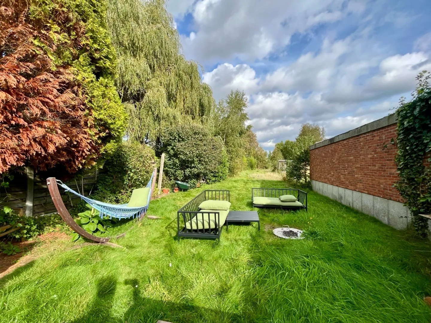 De achterliggende tuin is uitzonderlijk diep wat veel indelingsmogelijkheden biedt. Dankzij de oppervlakte kan er een leuke moestuin, tuinterras, serre, speeltuin,... voorzien worden.