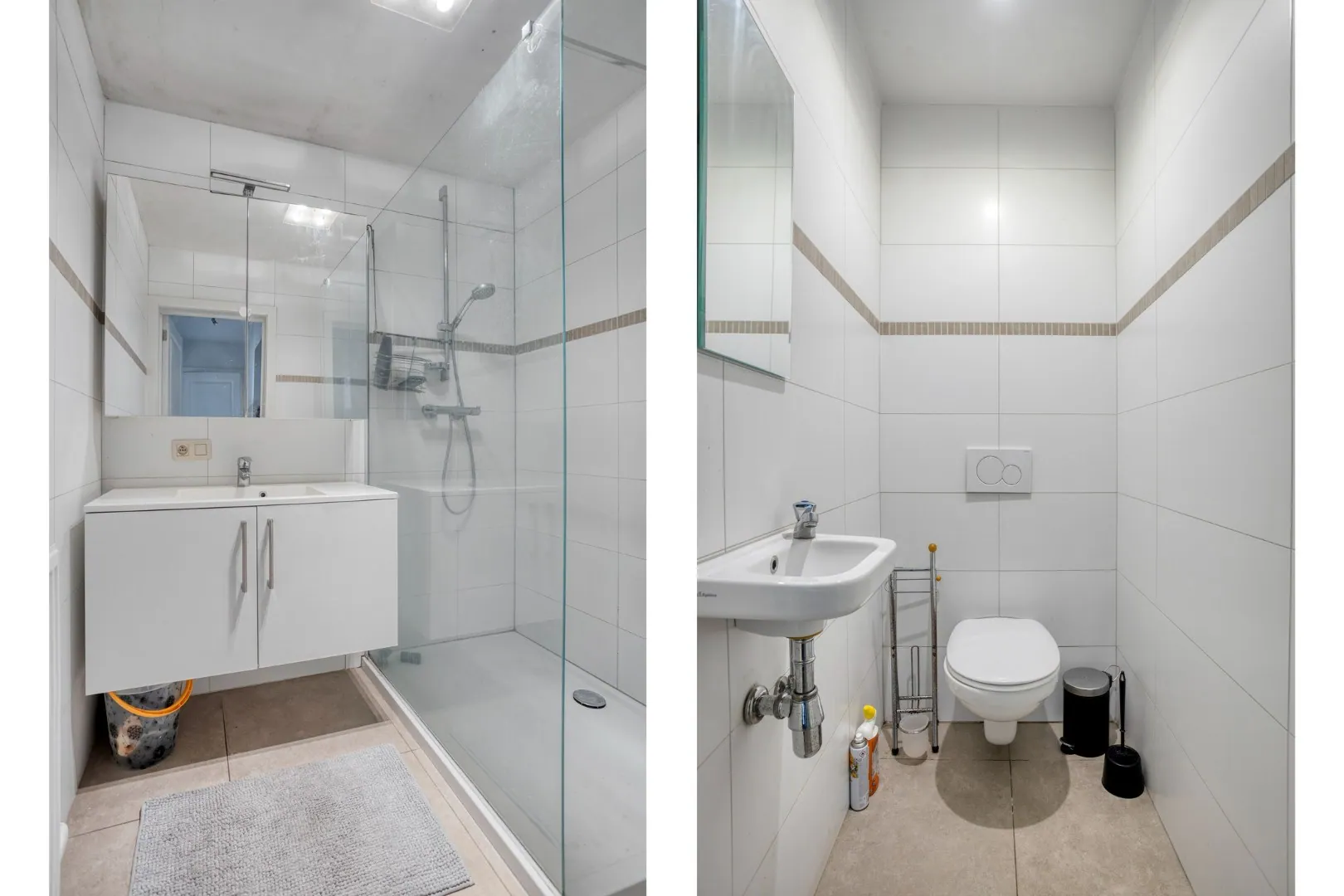 De nachthal brengt ons naar een apart gastentoilet, een berging/wasplaats, 2 volwaardige slaapkamers en de badkamer voorzien van inloopdouche en wastafel. Via de slaapkamer is het tweede terras achteraan toegankelijk.