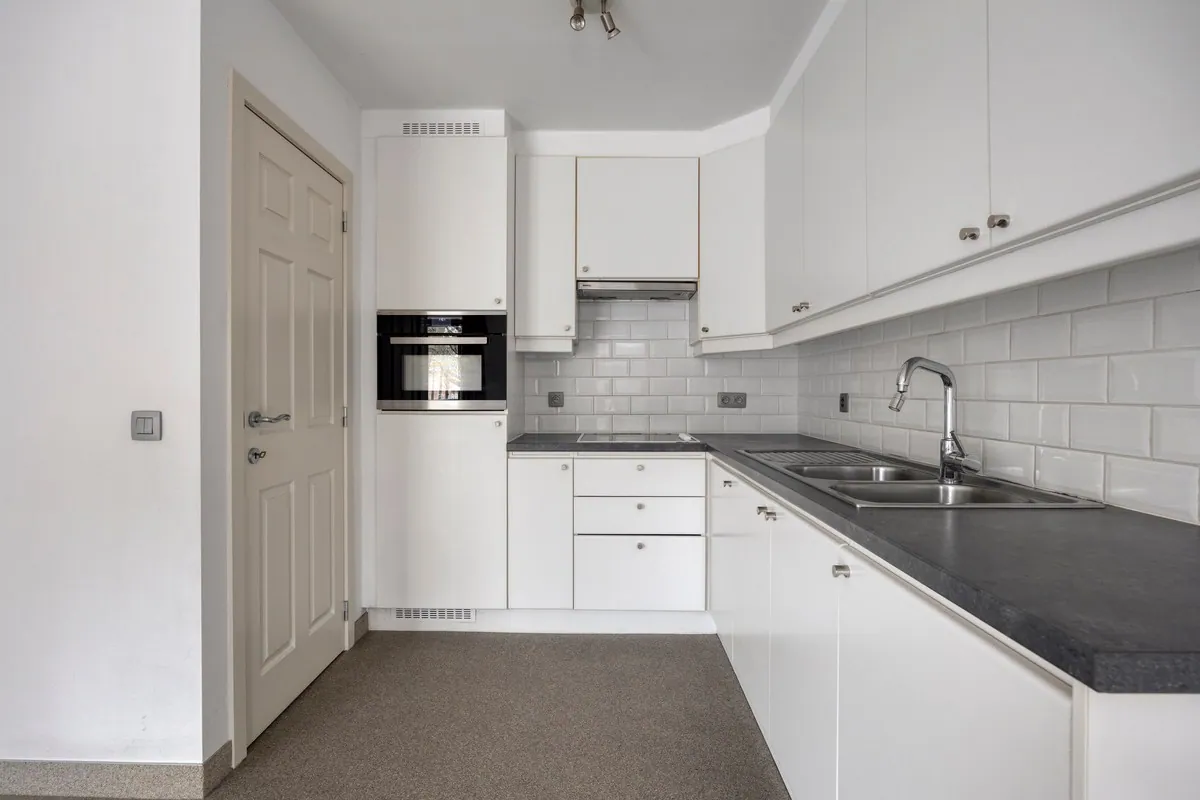 Via de inkomhal met ingebouwde vestiaire en apart gastentoilet betreden we het appartement. Van hieruit komen we in de ruime en lichtrijke woonkamer met aansluitend een uitgeruste open keuken. Aansluitend bevindt zich een praktische berging met aansluiting voor wasmachine en droogkast.