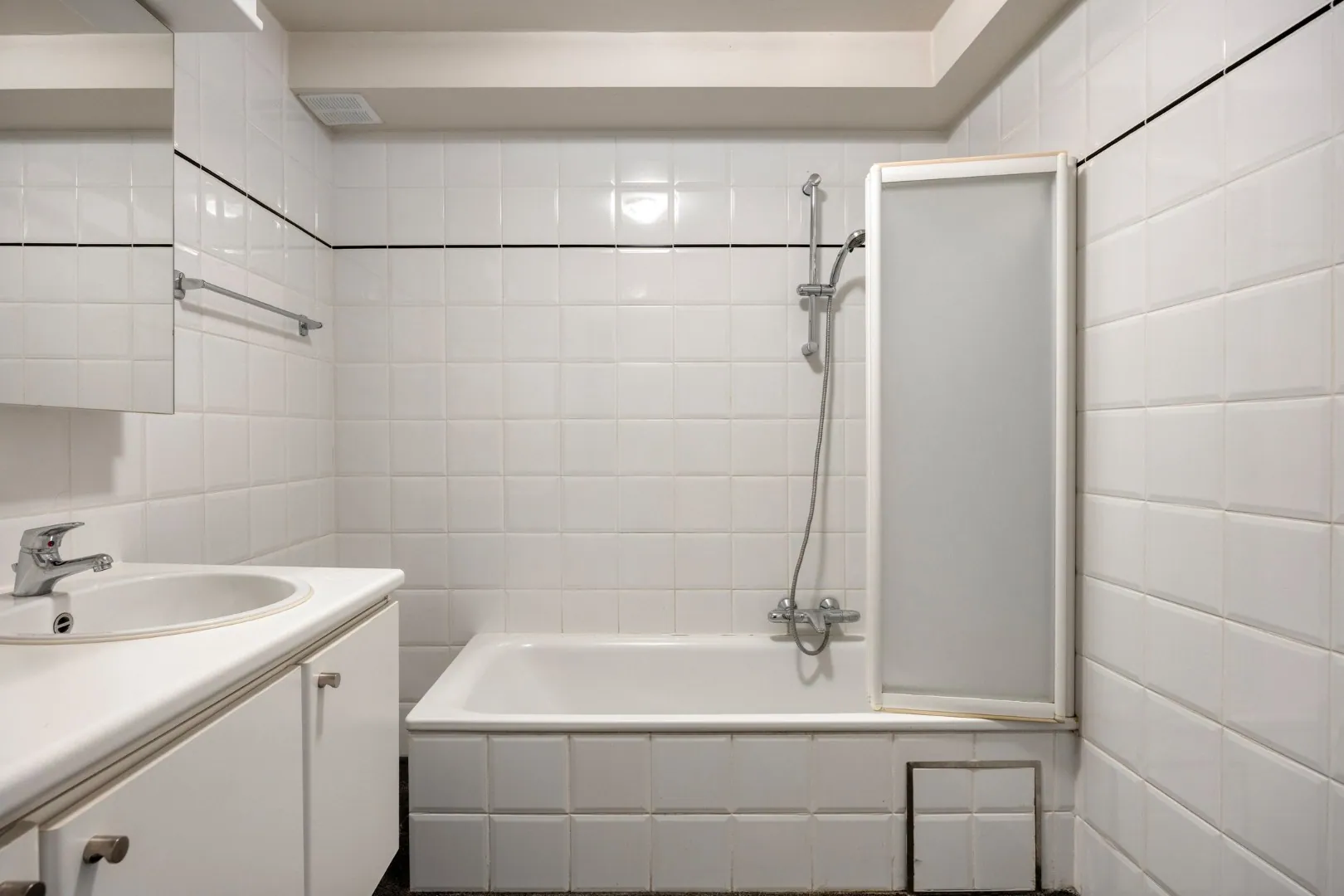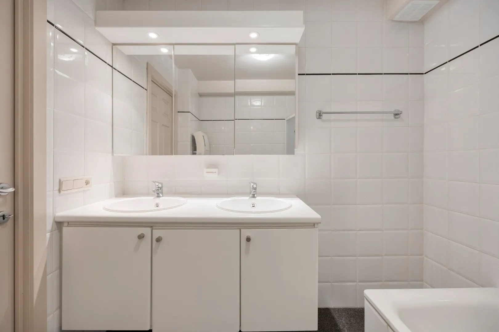 Aan de achterzijde van het appartement bevinden zich twee ruime slaapkamers, waarvan de grootste voorzien is van een ingebouwde kleerkast. De badkamer is uitgerust met een ligbad met douchefunctie en wastafel.