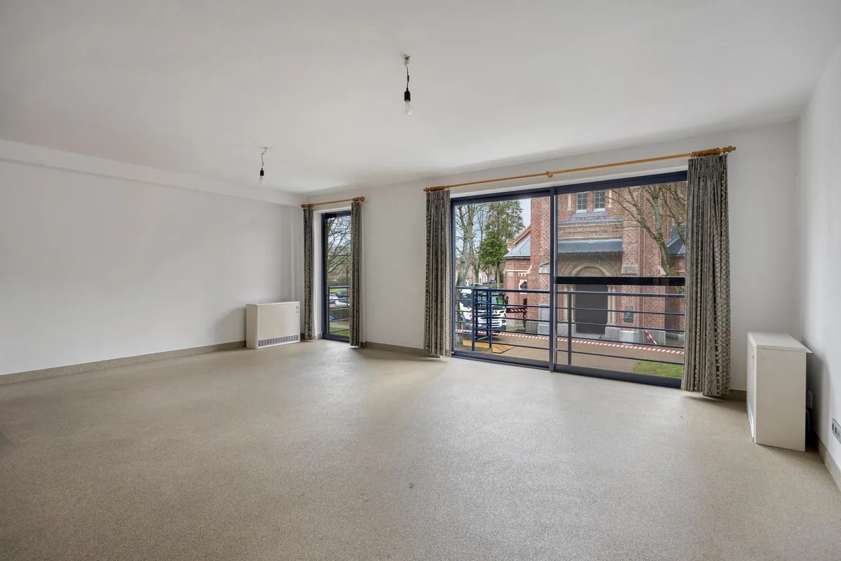 Achter het gebouw beschikt het appartement over een privatieve staanplaats en een handige berging, samen verplicht bij aan te kopen aan €14.000.