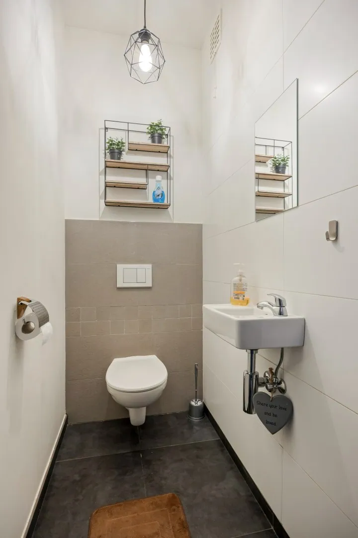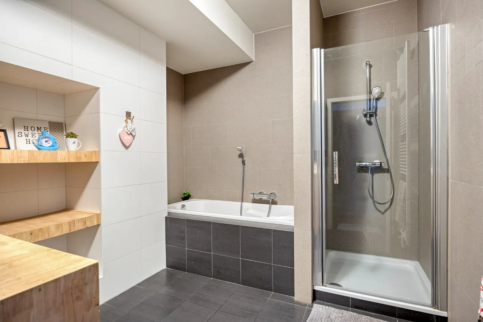 Verder brengt de nachthal ons bij 2 volwaardige slaapkamers, waarvan 1 werd uitgerust met een bureel. Tot slot vervolledigt een complete badkamer met wastafel, inloopdouche en ligbad dit unieke appartement.