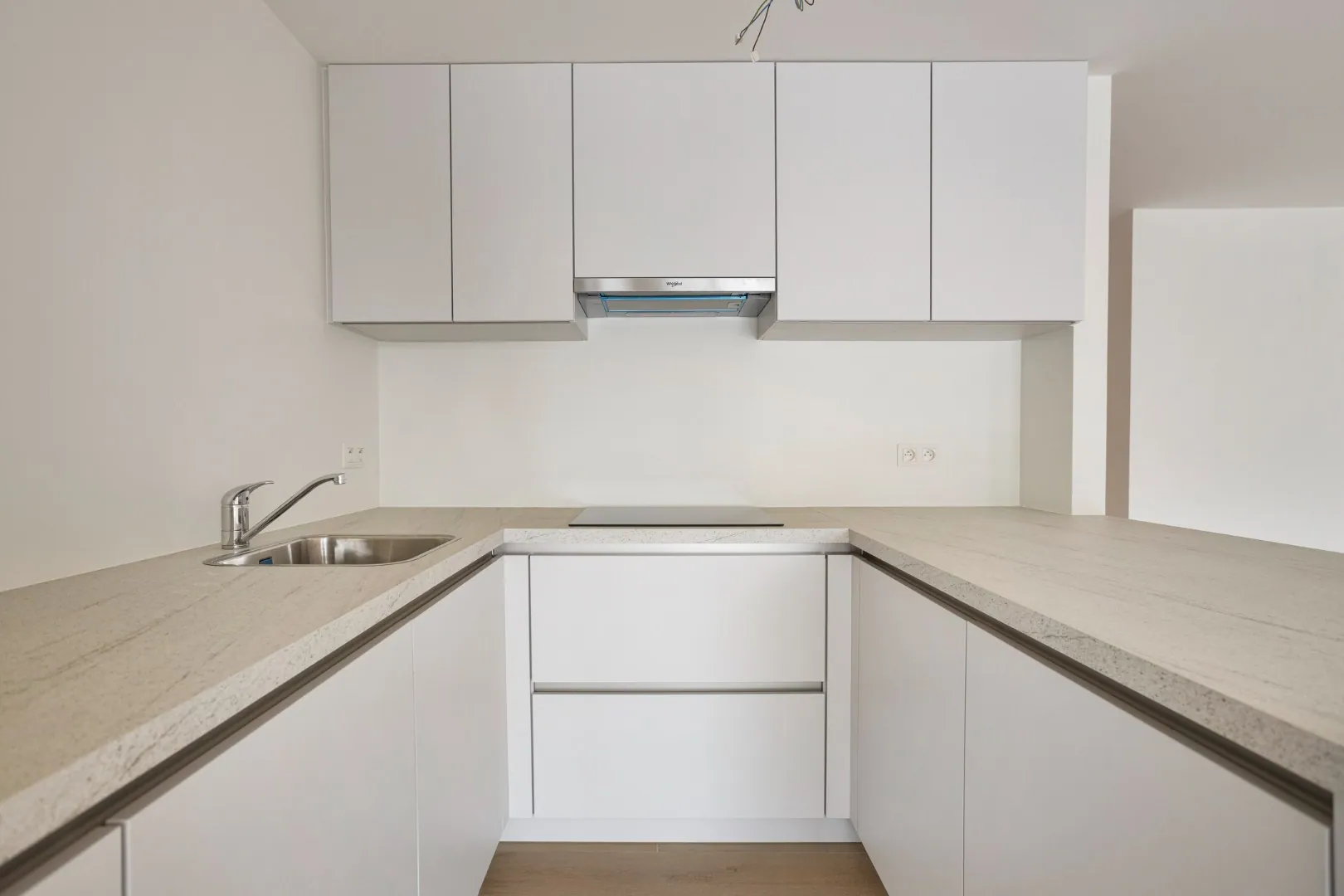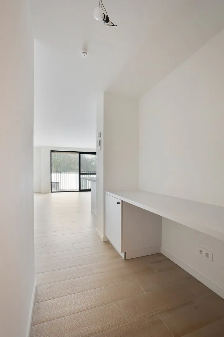 De volledig uitgeruste open keuken heeft een groot aanrecht. De nachthal met bureau en ingebouwde kast brengt je naar twee volwaardige slaapkamers, de badkamer en het aparte toilet.