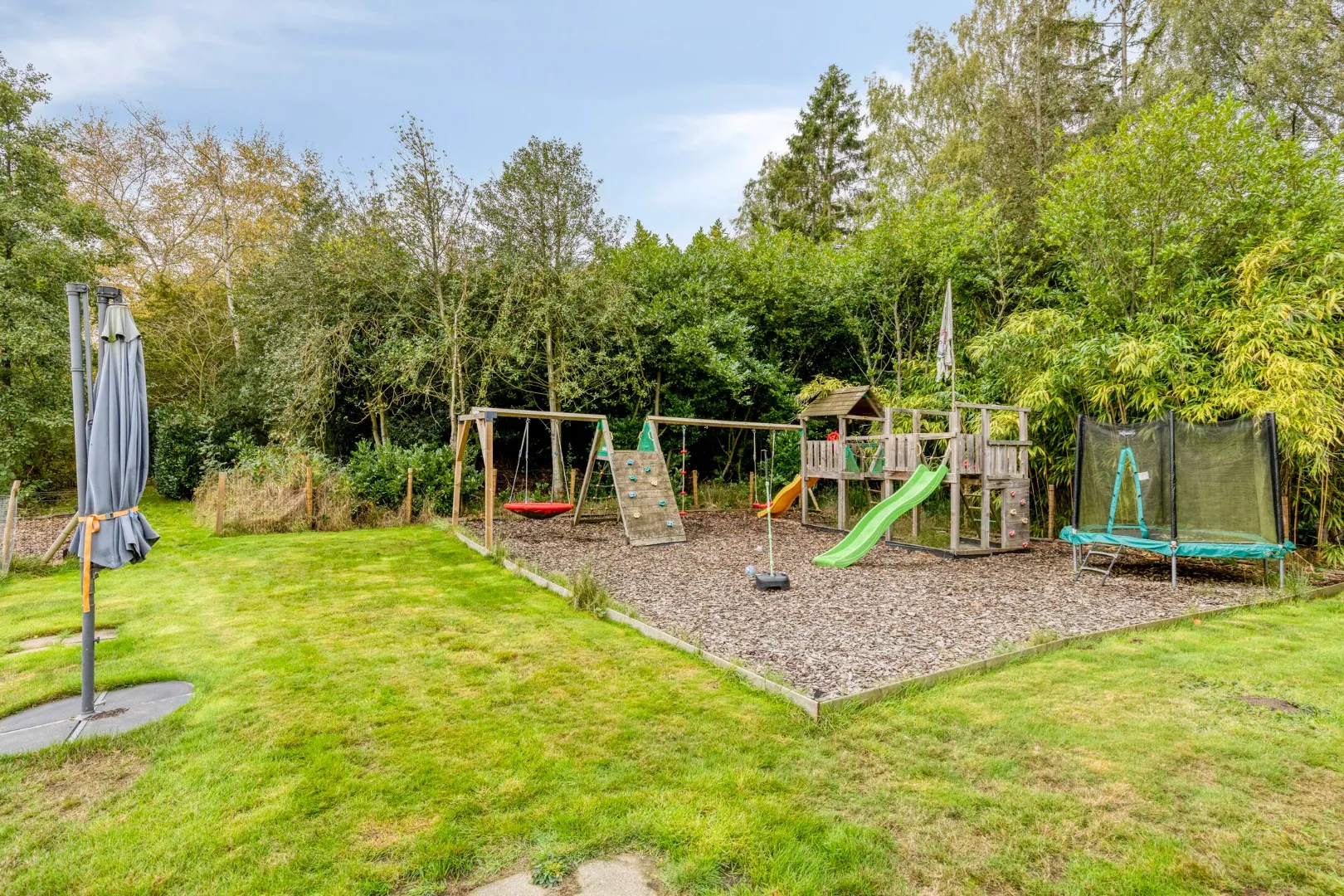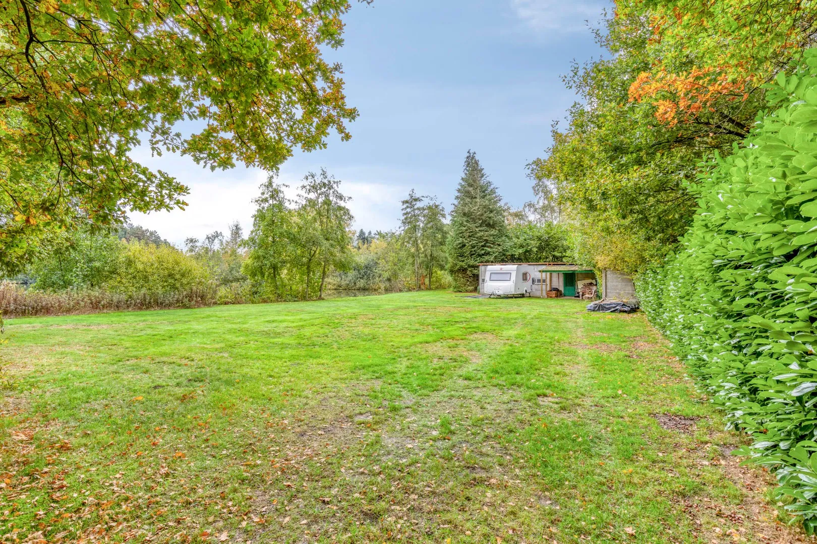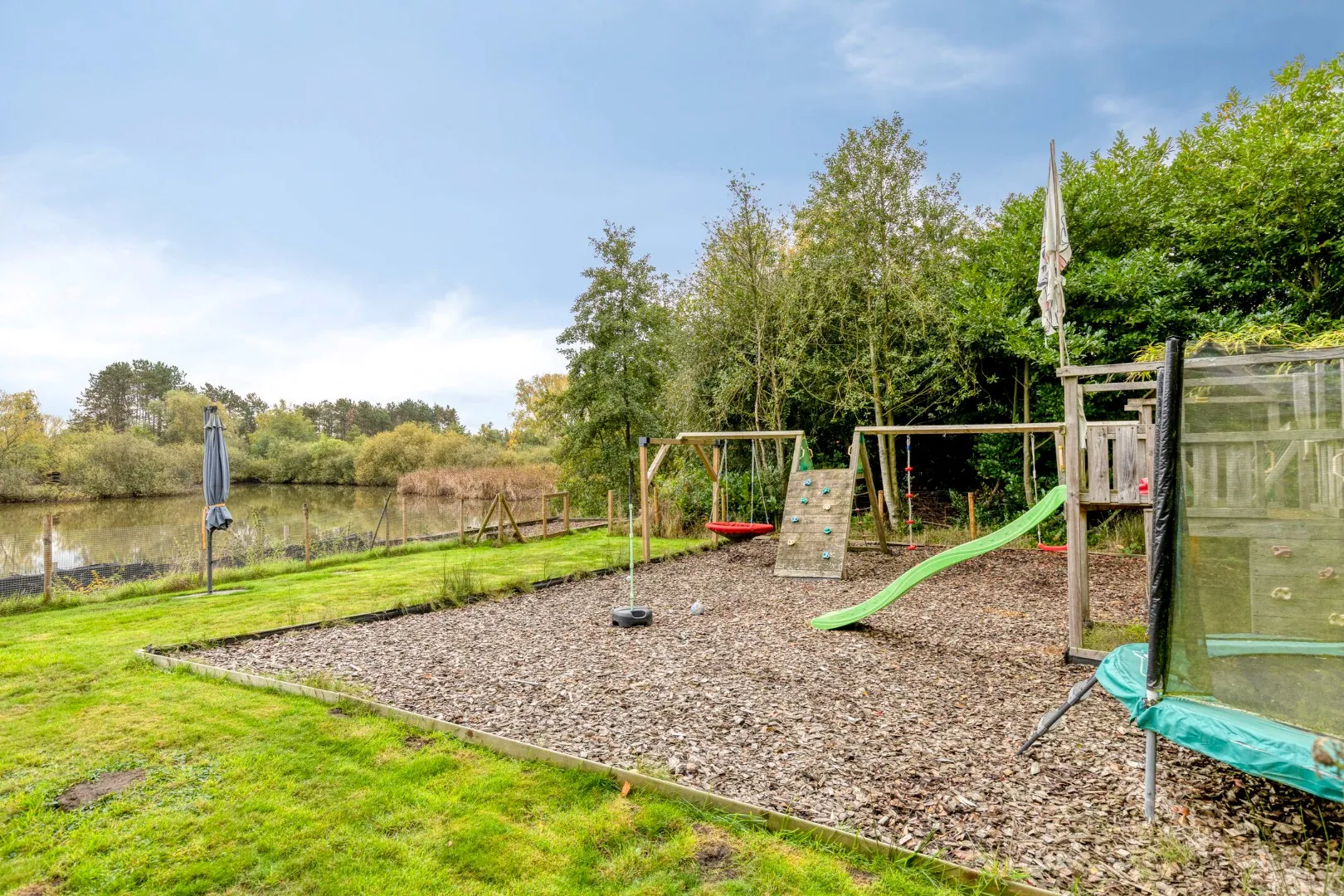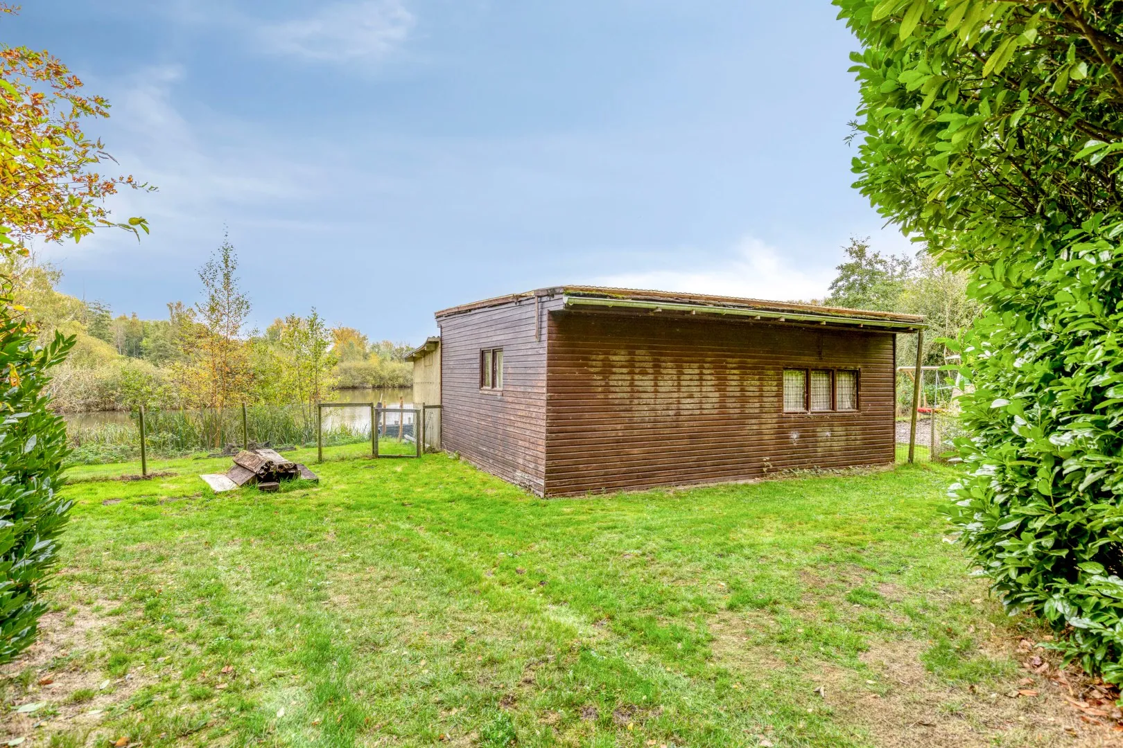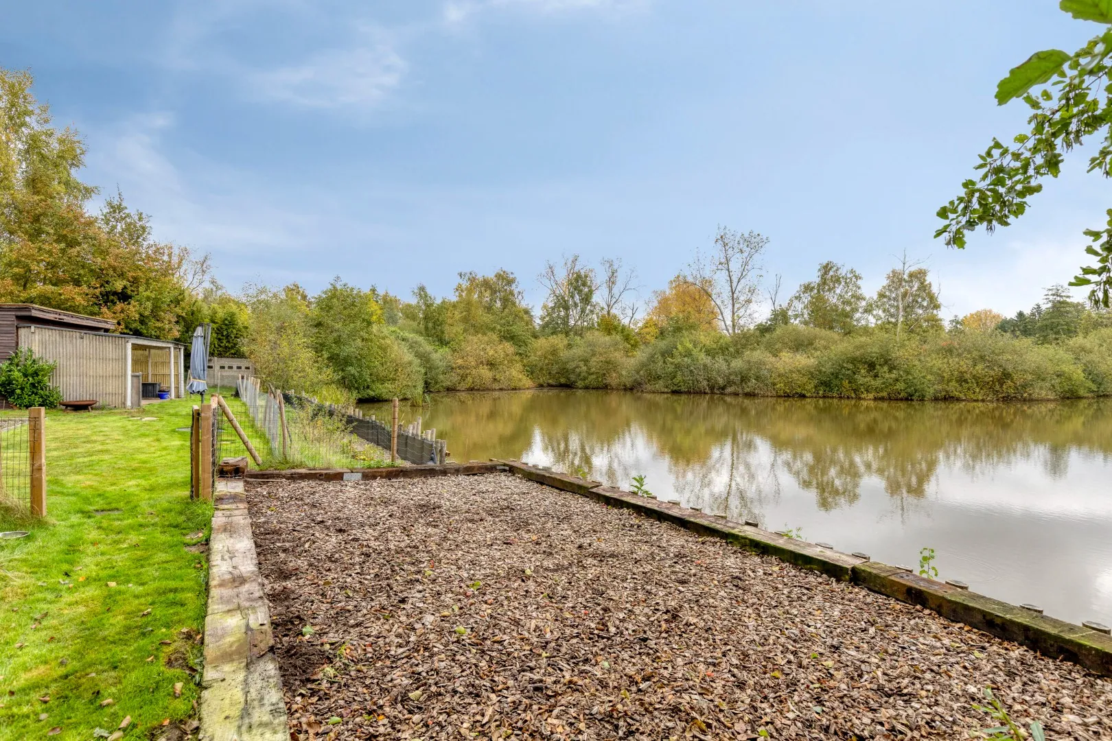 Met een aangelegde speeltuin en verschillende visplaatsen alsook een chalet met volledig omheinde tuin biedt dit perceel genot voor iedereen. De bijgebouwen zorgen dan weer voor de nodige stockagevoorzieningen.