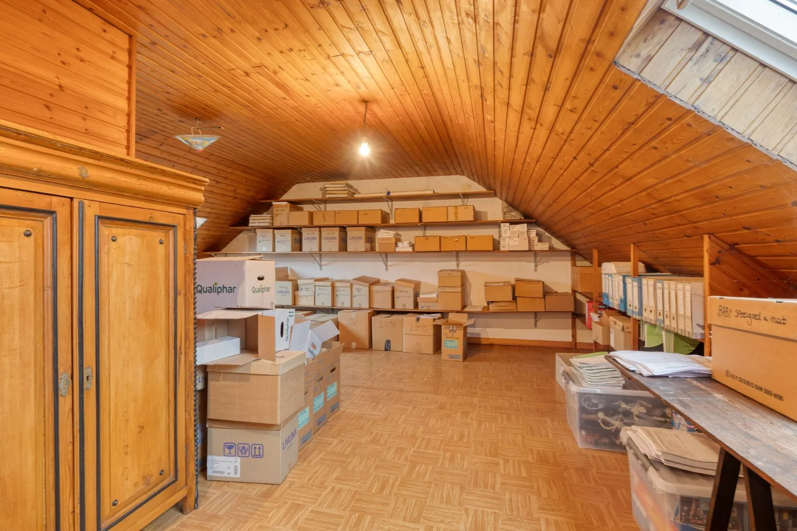 Op de tweede verdieping vinden we een derde slaapkamer en een ruime zolderruimte, ideaal als extra opslagruimte.