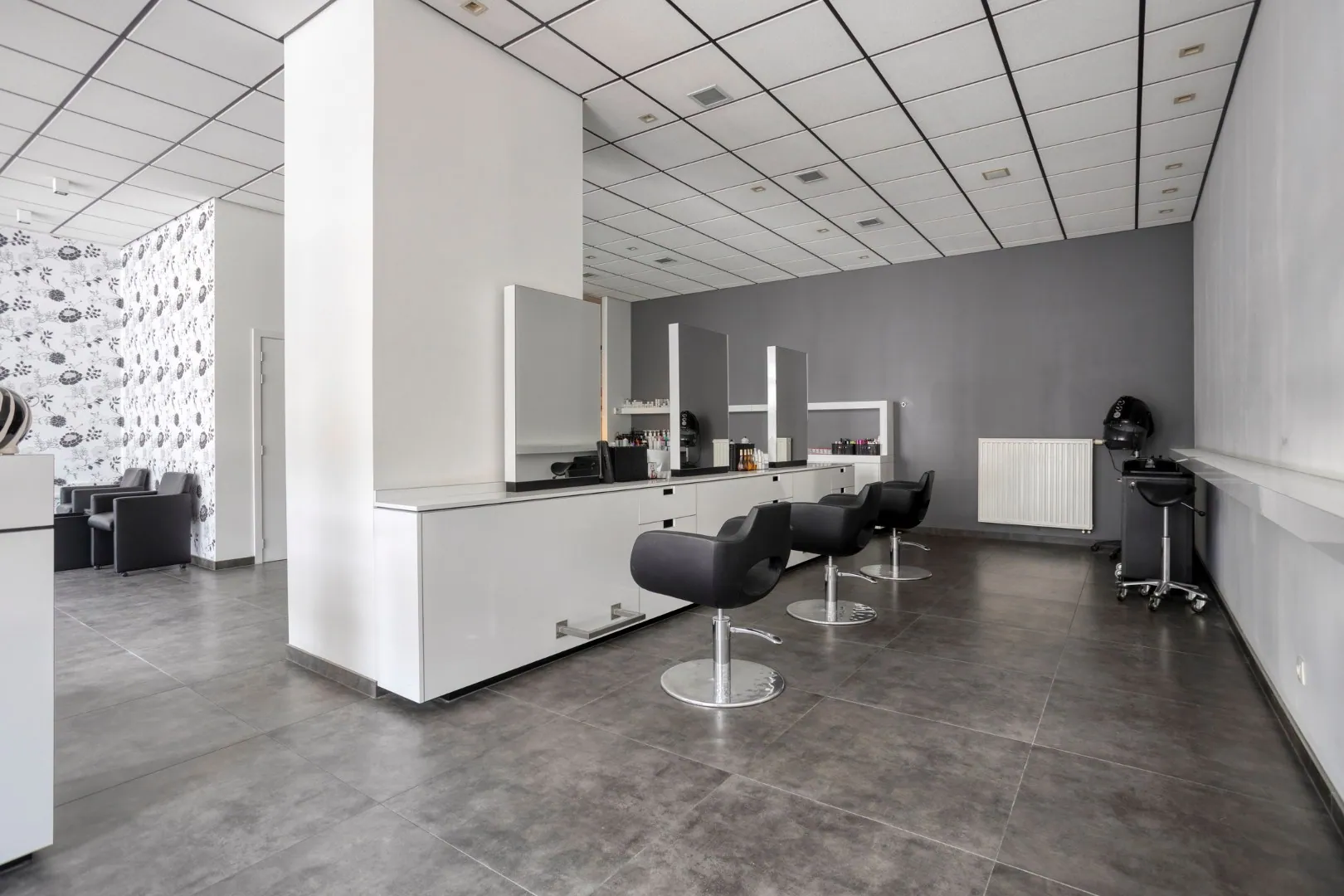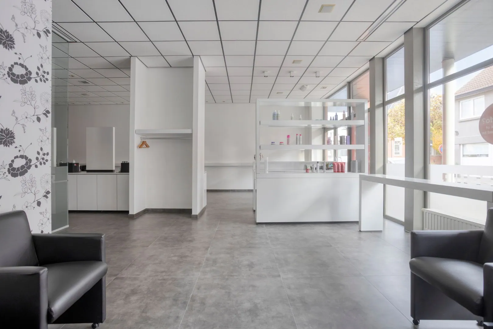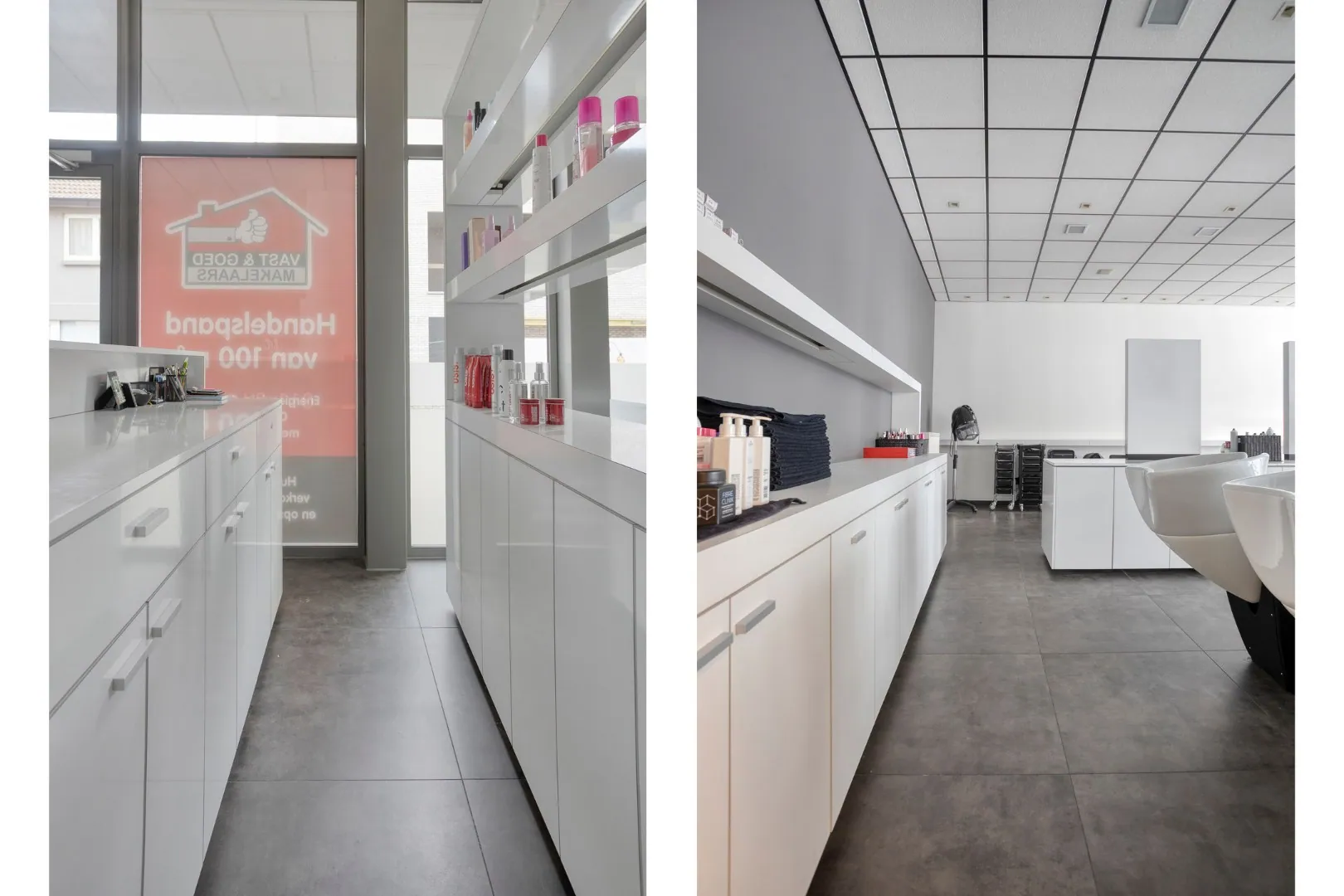 Het pand heeft een open indeling met hoge plafonds en een totale bruikbare oppervlakte van 100 m². Dankzij de grote ramen is het pand zeer lichtrijk. Momenteel doet het pand dienst als kapsalon, maar het is ook geschikt voor diverse andere doeleinden. Naast de verkoopruimte beschikt het pand over een apart toilet en een opslagruimte/keuken.