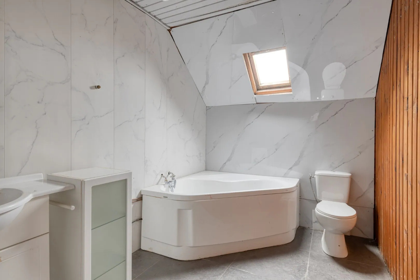 De eerste verdieping brengt ons 3 volwaardige slaapkamers en een badkamer uitgerust met een ligbad, een toilet en een wastafel.