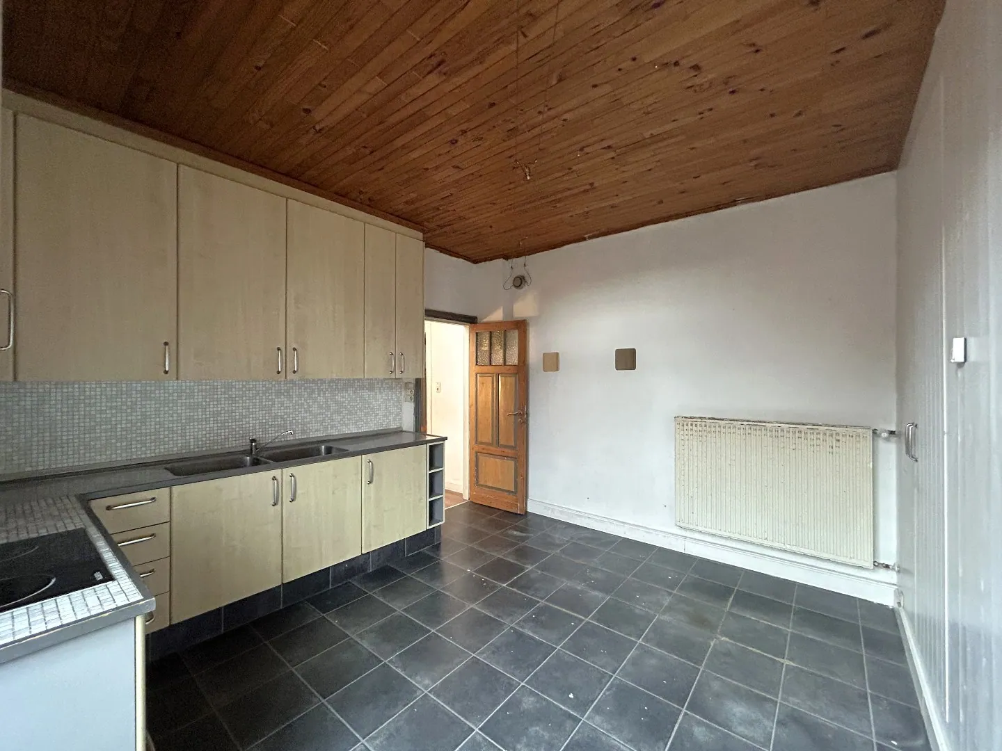 De inkomhal brengt ons rechtstreeks in de keuken met aanpalende eetkamer en naastgelegen leefruimte. Het gelijkvloers wordt vervolledigd met een praktische badkamer en een toegang tot een voorraadkelder. Tot slot is er nog een gezellig terras met achteringang aanwezig. Het terras is bereikbaar vanuit zowel eetkamer als vanuit de leefruimte. De eerste verdieping brengt ons nog een volwaardige slaapkamer.
