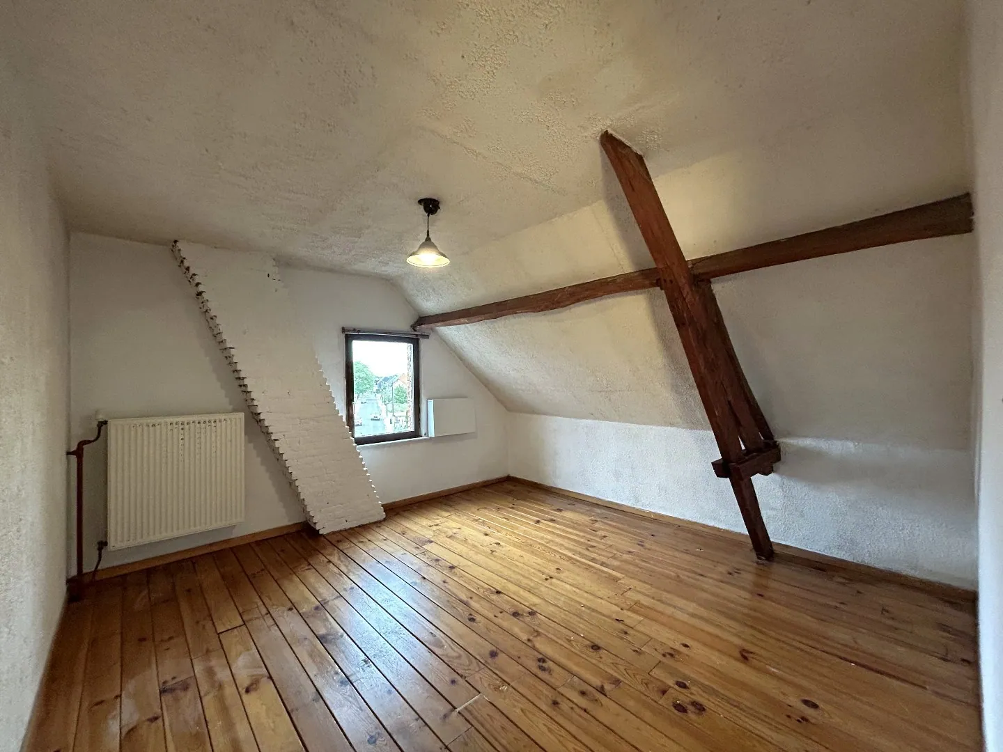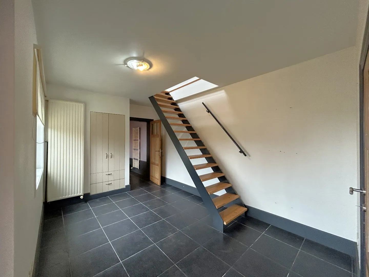 De trap in de gemeenschappelijke inkomhal brengt ons via de hal bij de keuken met ontbijthoek en aanpalende living. Verder beschikken we hier nog over een badkamer om vervolgens via de vaste trap de 2e verdieping te bereiken waar we nogmaals 2 volwaardige slaapkamers terugvinden. De tweede slaapkamer beschikt nog over een valtrap dewelke toegang biedt tot een bergzolder.