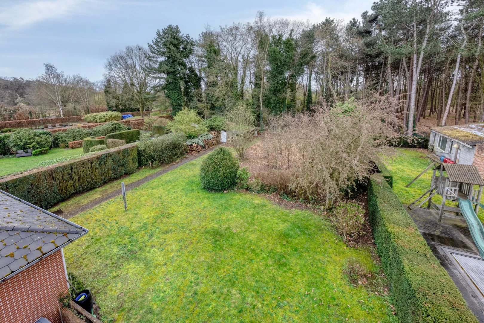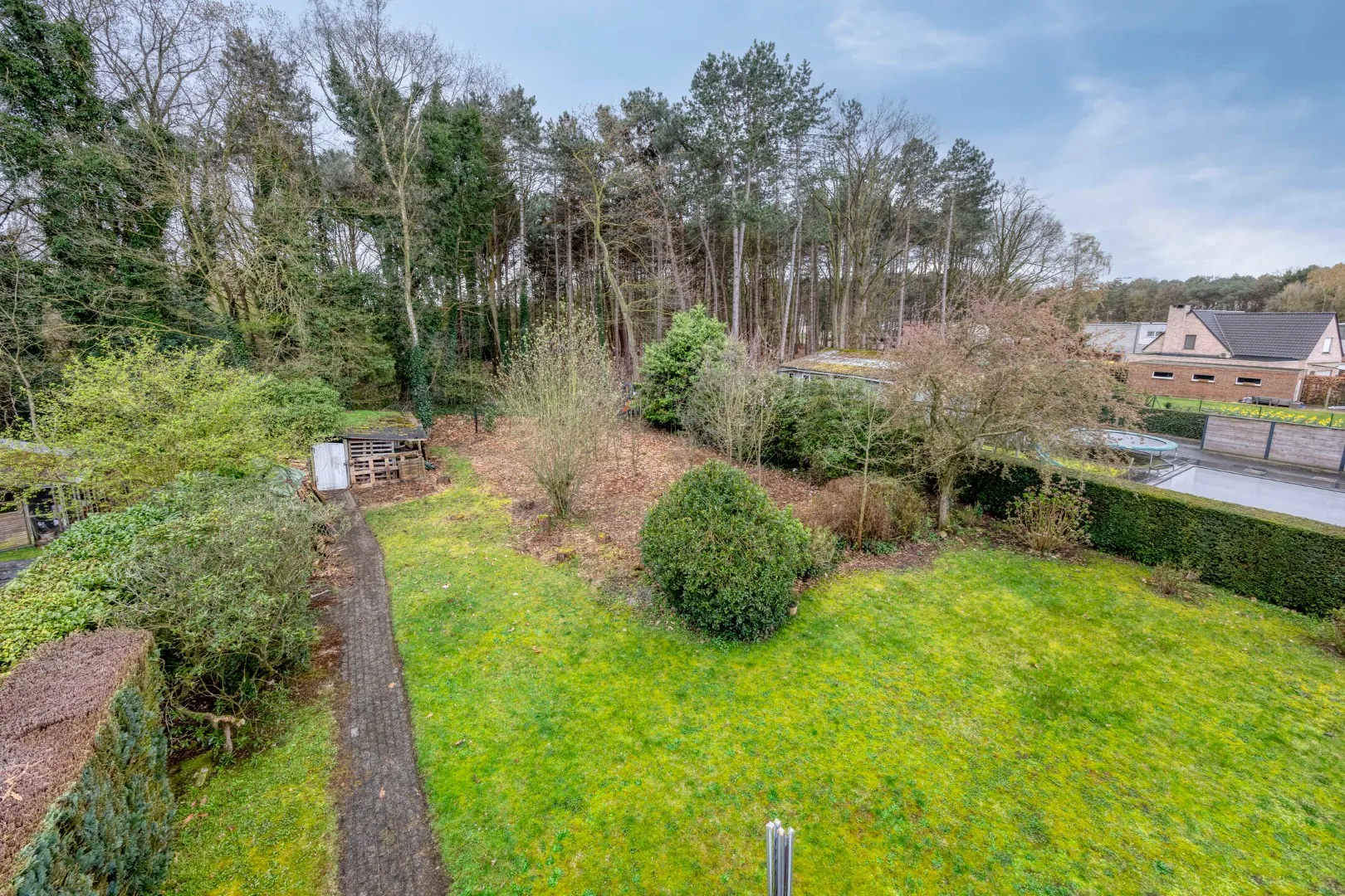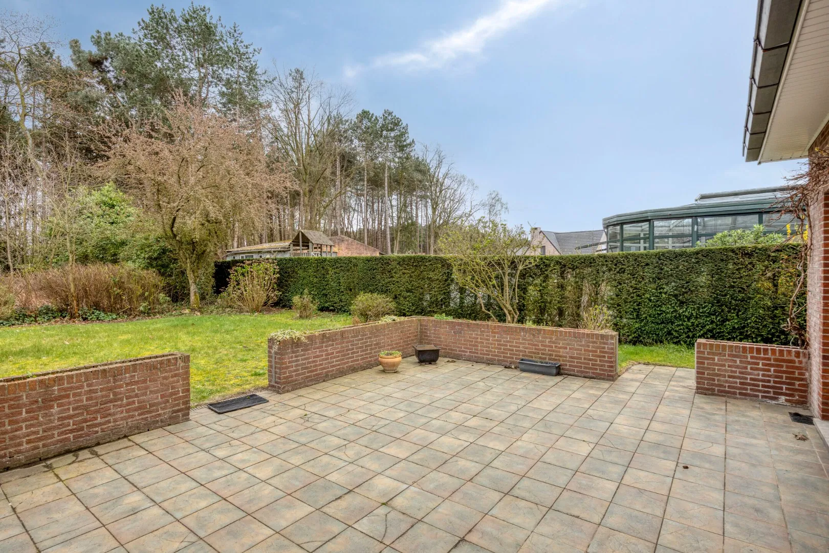 De mooi aangelegde en verzorgde tuin creëert een uitzonderlijk groene en rustige omgeving. Dankzij de totale perceeloppervlakte van 1.155 m² biedt deze eigendom bovendien tal van mogelijkheden.