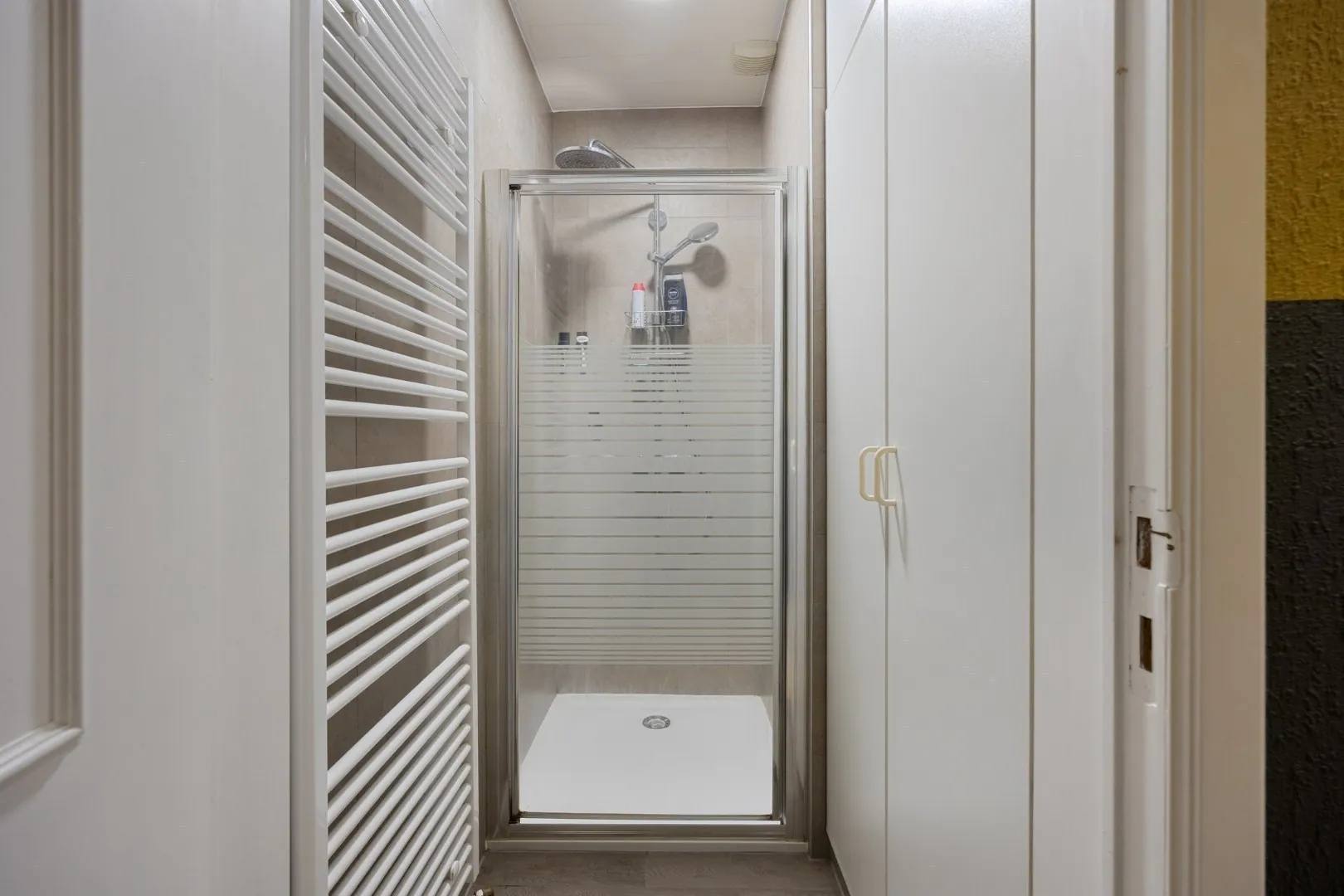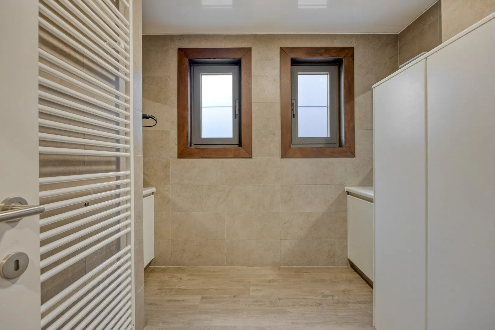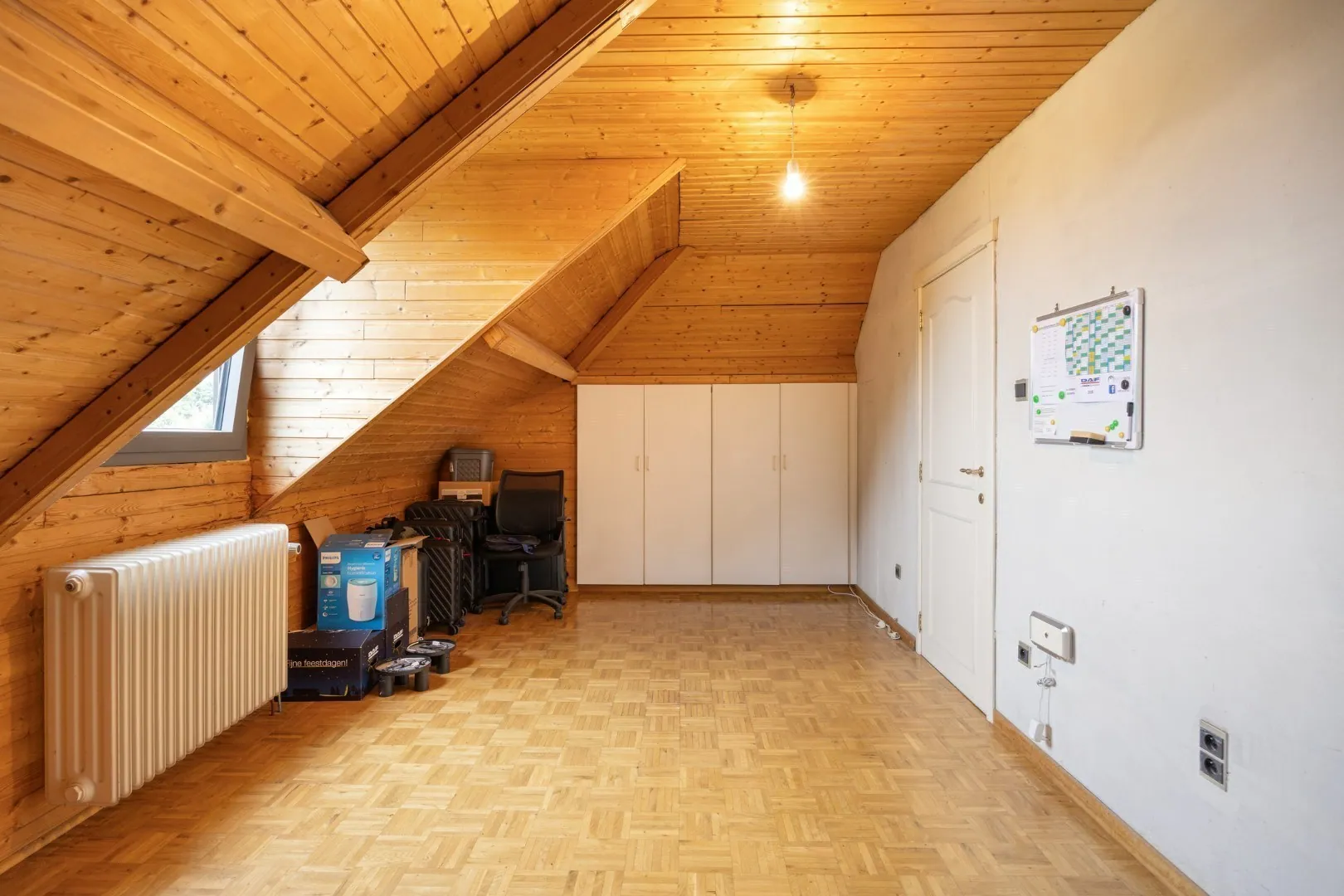 Op de eerste verdieping zijn er drie grote slaapkamers, elks voorzien van ingemaakte kast. Daarnaast is er nog een 5de kamer die perfect kan ingericht worden als extra slaapkamer, bureau of hobbyruimte. In de nachthal is er nog een apart toilet en een wasplaats.