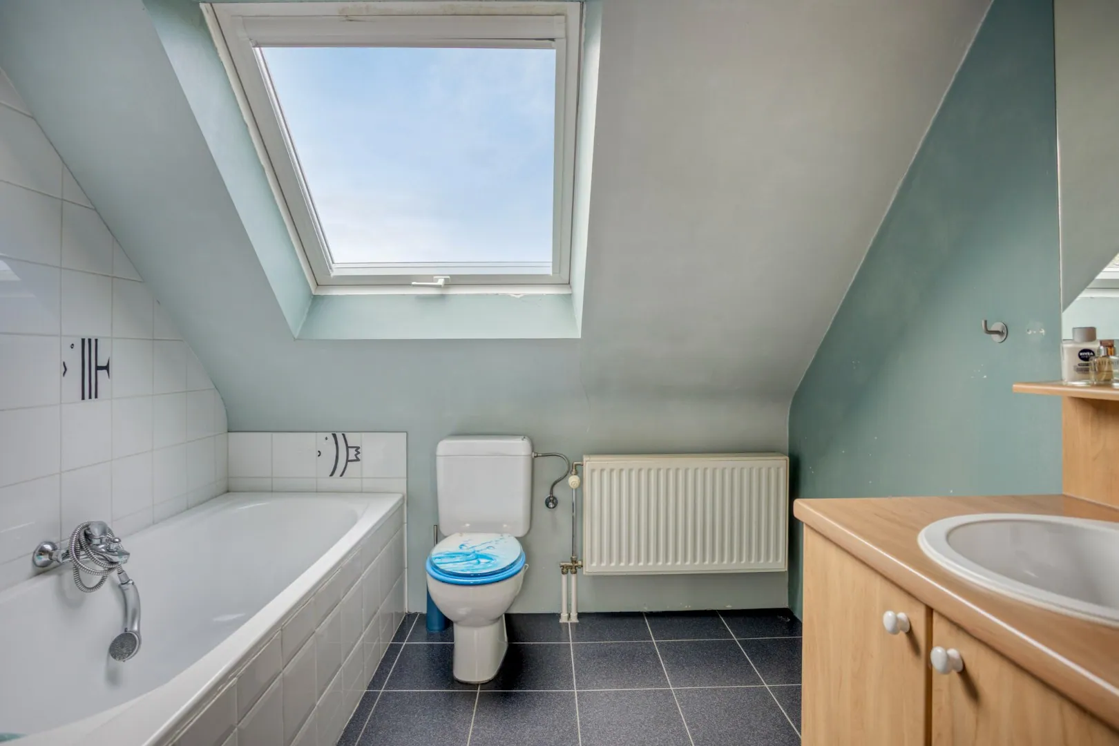 Tot slot beschikt de woning over een zuidwest-georiënteerde tuin waar u in alle rust en privacy kan genieten van een groene en rustige omgeving. Als extra troef bevindt de woning zich op wandelafstand van het kanaal Bocholt-Herentals. Ideaal gelegen voor wandel-, fiets- en visliefhebbers.