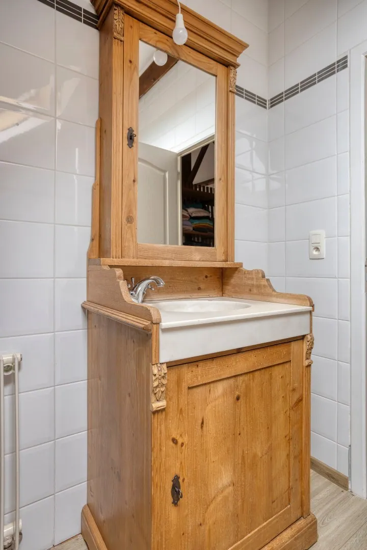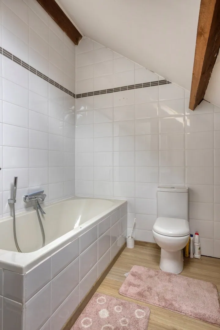 De eerste verdieping beschikt over 2 ruime slaapkamers, beide voorzien van airco, alsook een badkamer uitgerust met douche, ligbad, toilet en dubbele wastafel. De zolderverdieping, bereikbaar met een vaste trap zorgt voor nog een uitzonderlijk ruime slaapkamer met aansluitend een badkamer dewelke is voorzien van ligbad, toilet en wastafel. Een zolderruimte als extra opbergruimte maakt deze woning compleet.