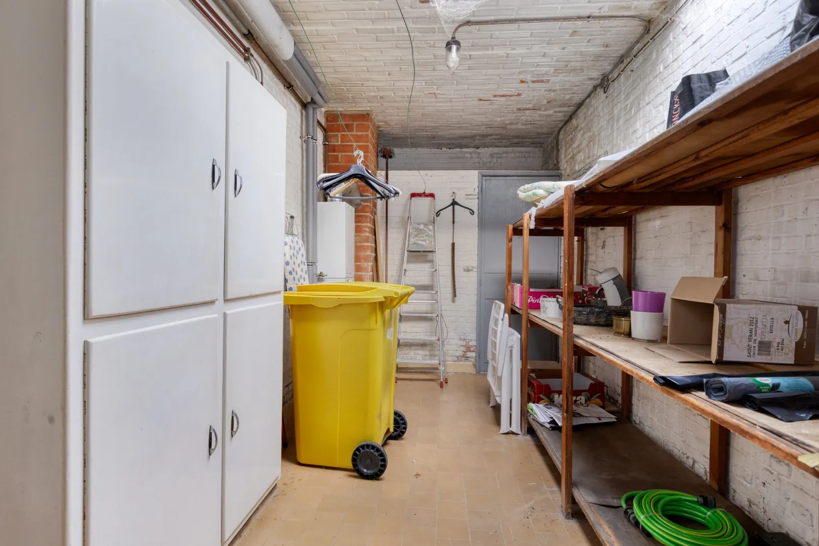 We betreden de woning via het handelspand, voorheen ingericht als boetiek. Vervolgens bereiken we de leef- en eetruimte met aansluitend de keuken. Achterliggend bevindt zich een badkamer dewelke voorzien is van een ligbad, een toilet en een wasbak alsook beschikt het over de nodige aansluitingen voor een wasmachine en een droogkast.Verder brengt het gelijkvloers ons nog een praktische berging, de toegang tot een ruime voorraadkelder alsook toegang tot een 2e kelder. Een klein terrasje zorgt nog voor de gewenste buitenruimte waar zich een tweede toilet bevindt.