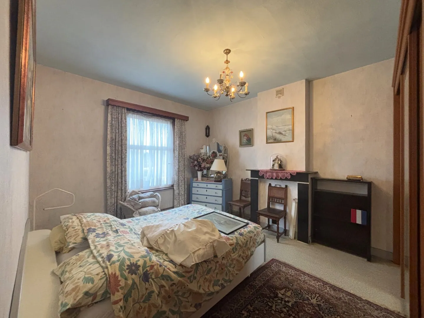 Bij het betreden van de woning komen we in een ruime inkomhal. Van daaruit heeft u toegang tot de lichtrijke woonkamer met gezellige open haard. Aangrenzend vindt u de volledig uitgeruste keuken met eetkamer. Achteraan bevinden zich een veranda, een douchekamer met toilet, een berging/wasplaats en een badkamer met dubbele wastafel en ligbad. Daarnaast is er op het gelijkvloers een grote slaapkamer met dressing. Deze ruimte werd in het verleden gebruikt als kapsalon, maar leent zich ook uitstekend voor andere doeleinden, zoals een praktijkruimte of kantoor.