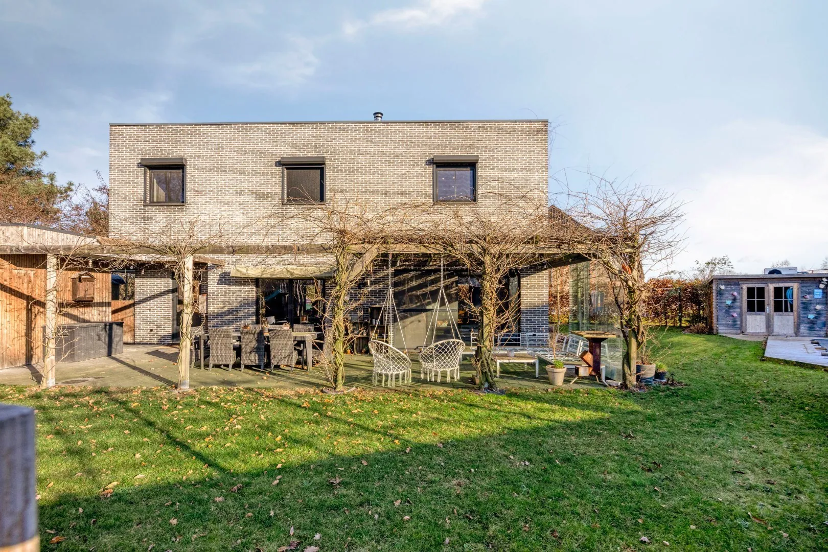 De woning is gelegen op een perceel van 715 m² waar het buiten volop genieten is. De zuidgerichte tuin beschikt over twee terrassen en een verwarmd zwembad, ideaal om van de zon te genieten. Het terras aan de woning vormt de ideale plek om in de zomer te vertoeven. De aanwezige blauweregen zorgt voor een natuurlijke zonnewering van zowel het terras als de woning. Daarnaast is er een carport met ruime tuinberging.