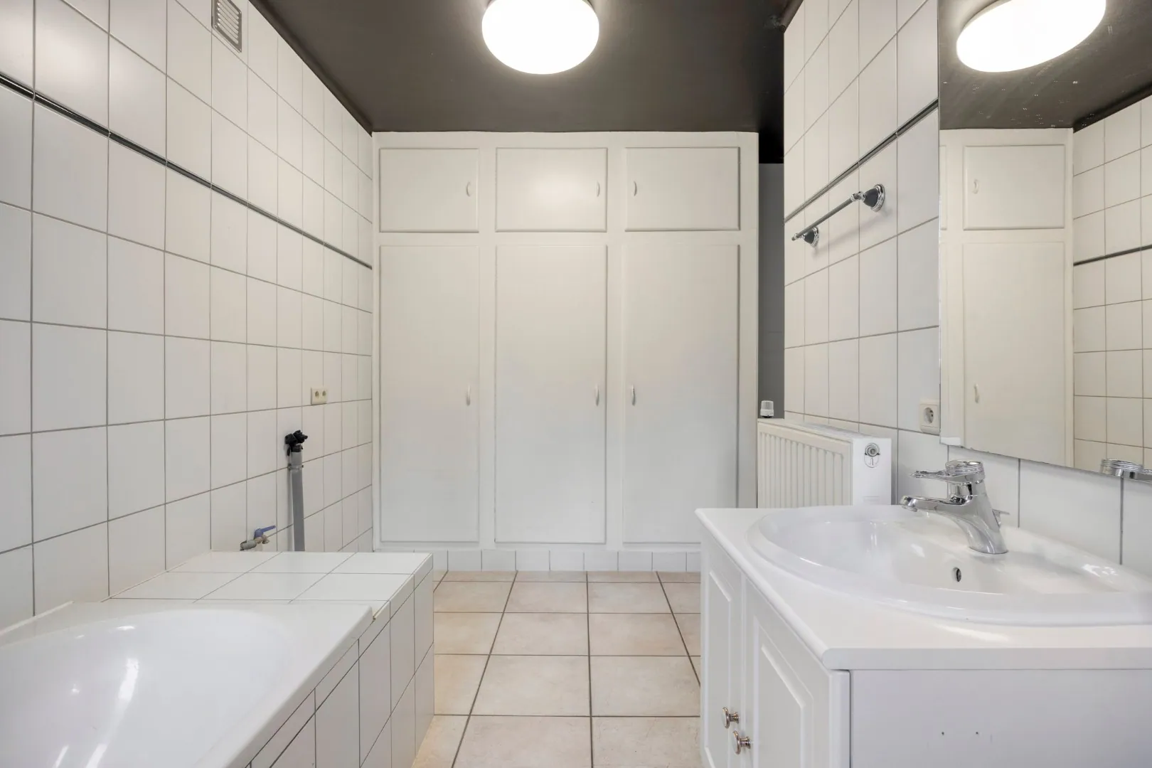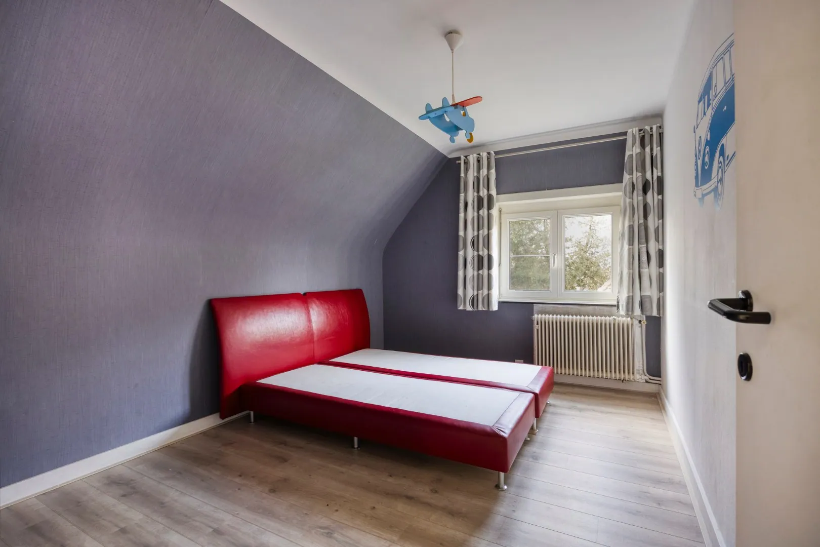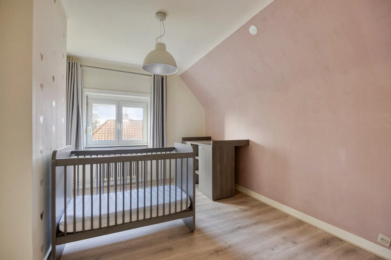 Via de vaste trap in de inkomhal bereiken we de eerste verdieping. Hier vinden we vier ruime slaapkamers, waarvan één momenteel ingericht is als dressing. De woning is bovendien uitgerust met een rolstoellift, waardoor ook deze verdieping toegankelijk is voor iedereen.