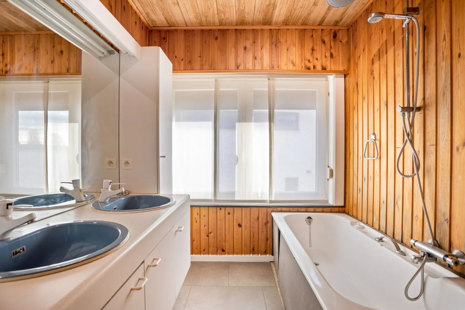 De nachthal brengt ons 3 volwaardige slaapkamers en een badkamer voorzien van een ligbad, een dubbele wastafel en een toilet.