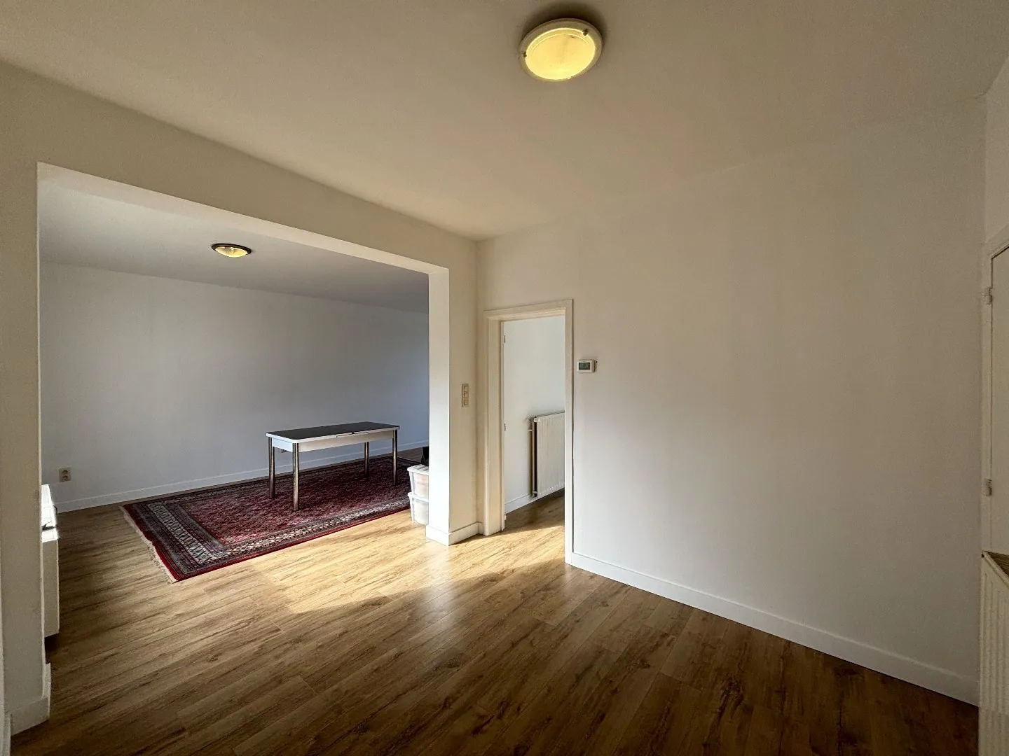Bij het betreden van de woning komen we in de inkomhal, die toegang biedt tot de L-vormige, lichtrijke woonkamer. Vanuit de woonkamer kunnen we de kelder bereiken, evenals de tweede woonkamer/eetkamer, wasplaats/berging met inbouwkasten, en de badkamer die in 2021 vernieuwd is. Achter de woonkamer/eetkamer bevindt zich de gesloten, volledig uitgeruste keuken, die toegang geeft tot de veranda. Aan de achterzijde van de woning bevindt zich een polyvalente ruimte van 27m² met aparte ingang. Deze ruimte biedt commerciële mogelijkheden, kan dienen als extra slaapkamer, of gewoon als opslagruimte.