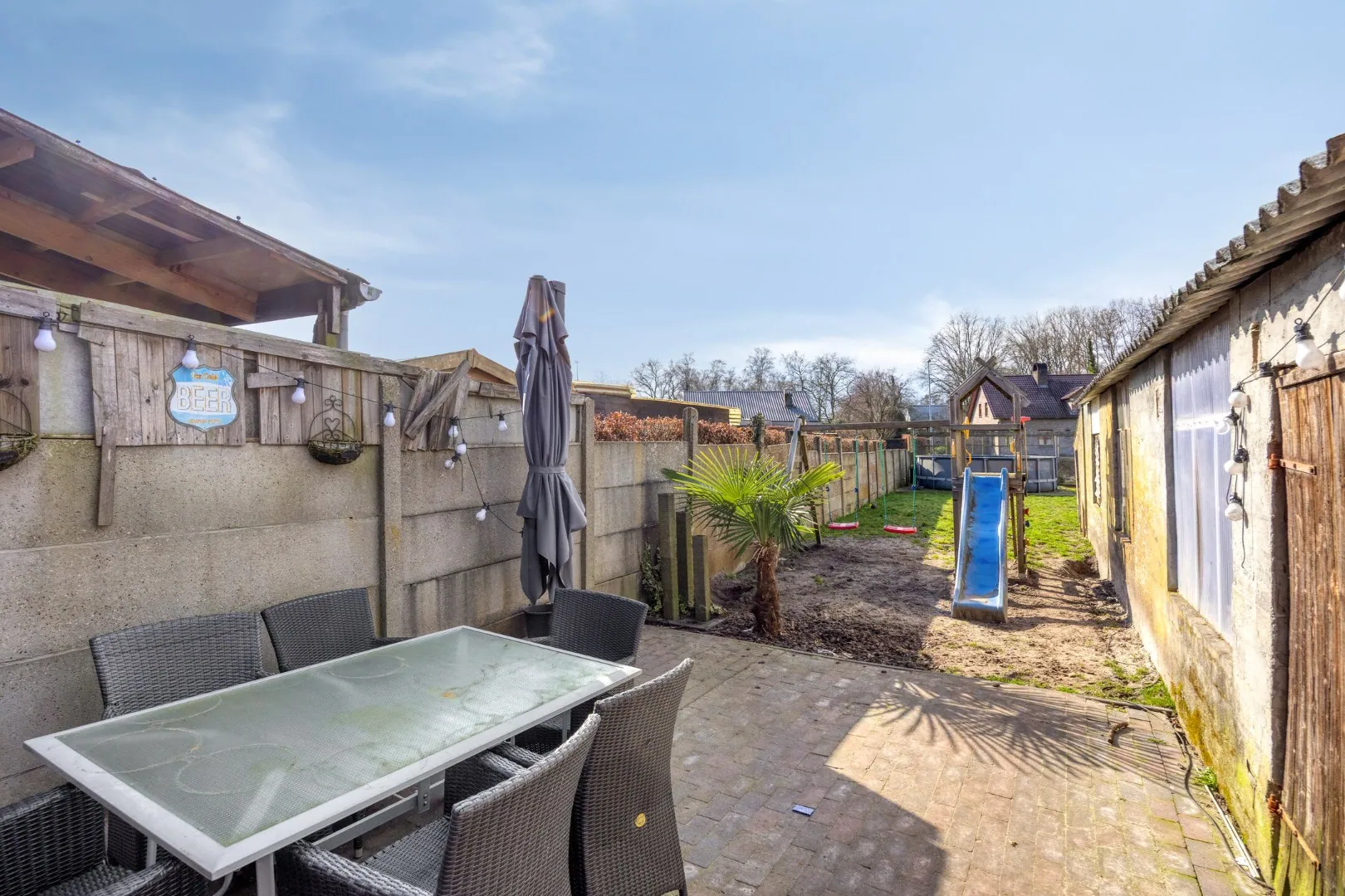 Buiten kan er volop van het buitenleven genoten worden in de zuidwestelijk georiënteerde tuin. In de tuin vinden we ook een ruime garage die voor extra opslagruimte zorgt.