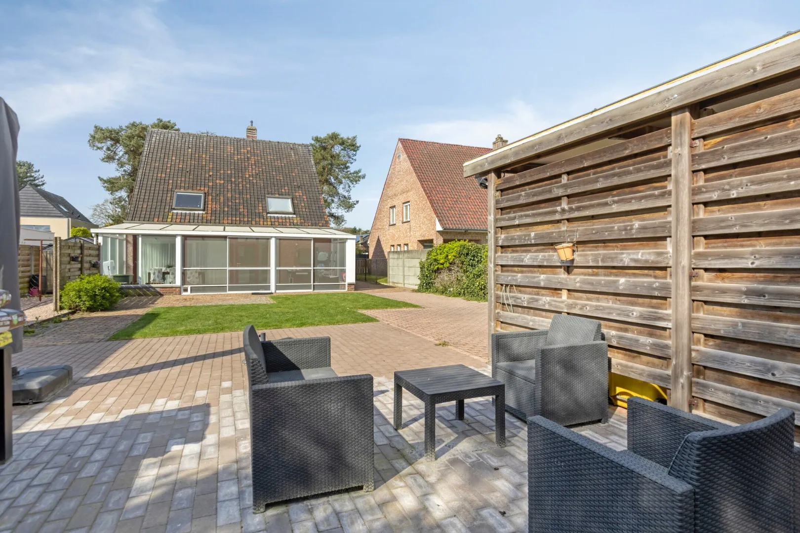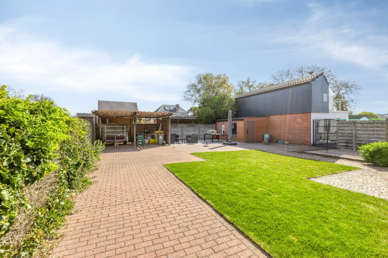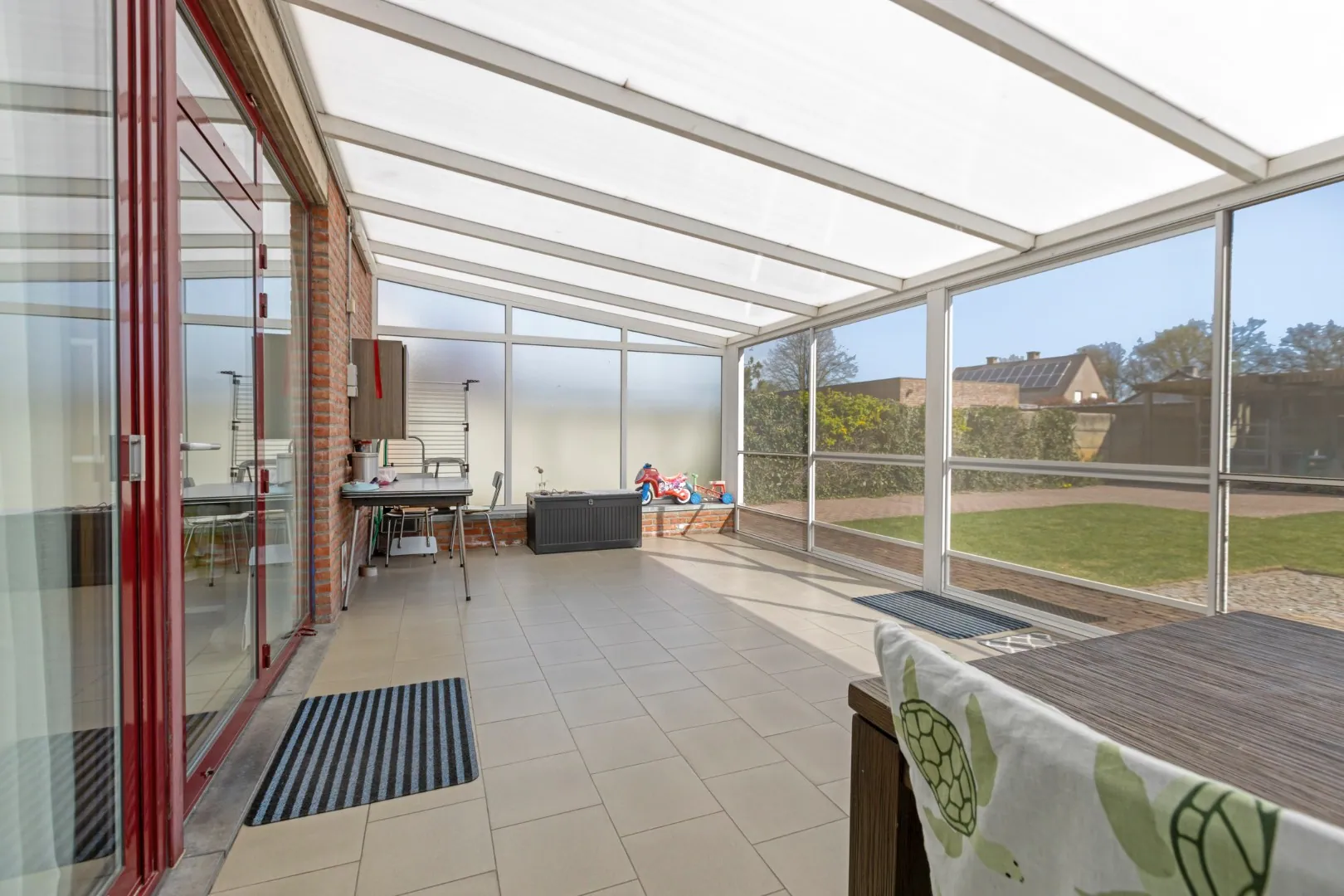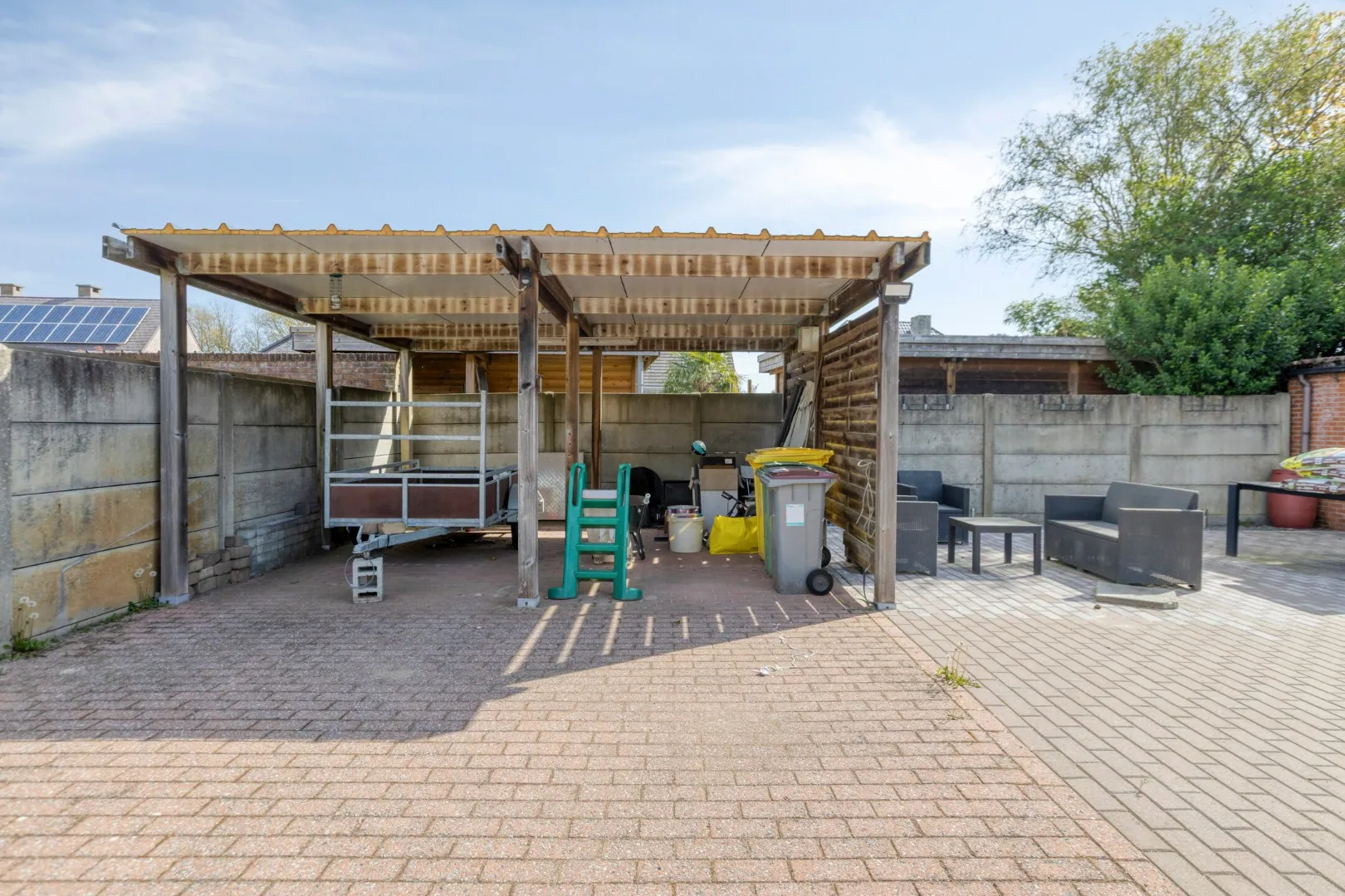 De keuken geeft toegang tot de ruime veranda, die uitkijkt op de tuin. De tuin is onderhoudsvriendelijk aangelegd en ideaal om te genieten van het buitenleven. Verder beschikt het perceel over een dubbele carport en een tuinberging.