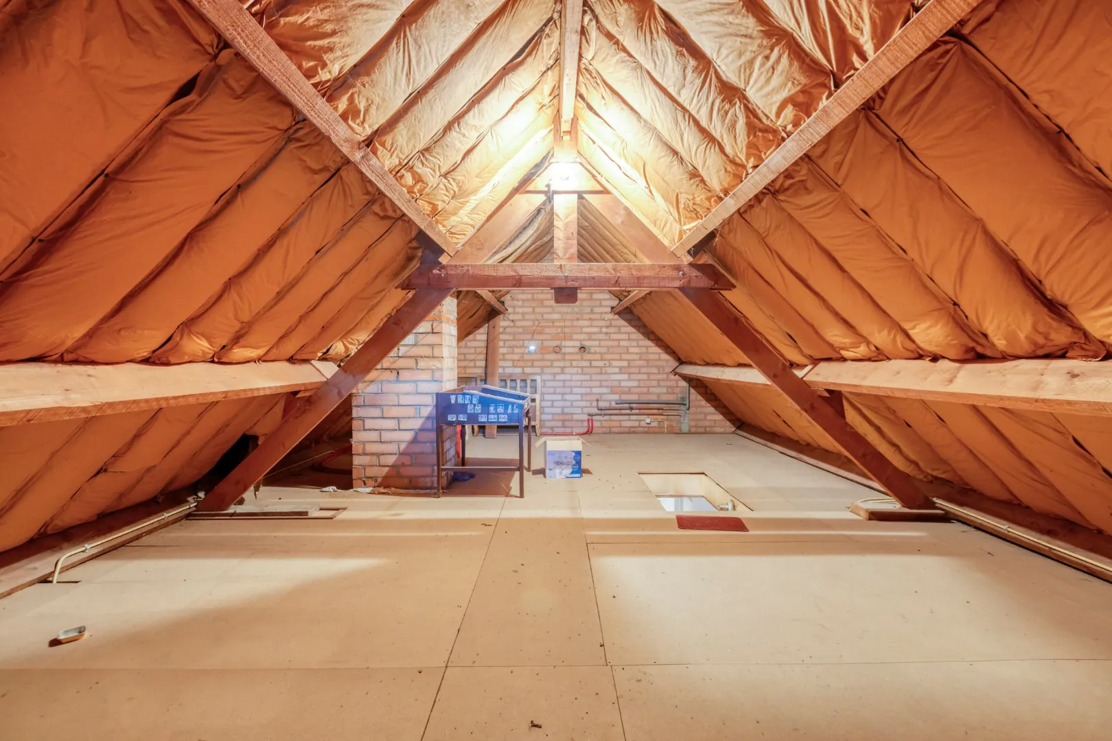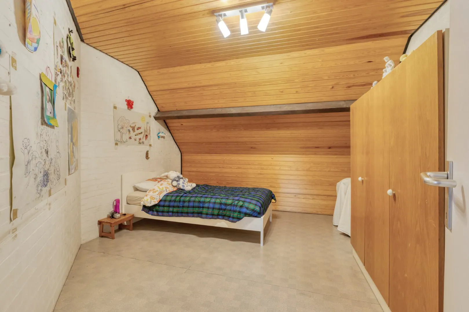De zolder is bereikbaar met een valtrap in de nachthal en biedt extra opbergruimte.
