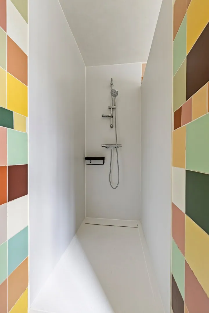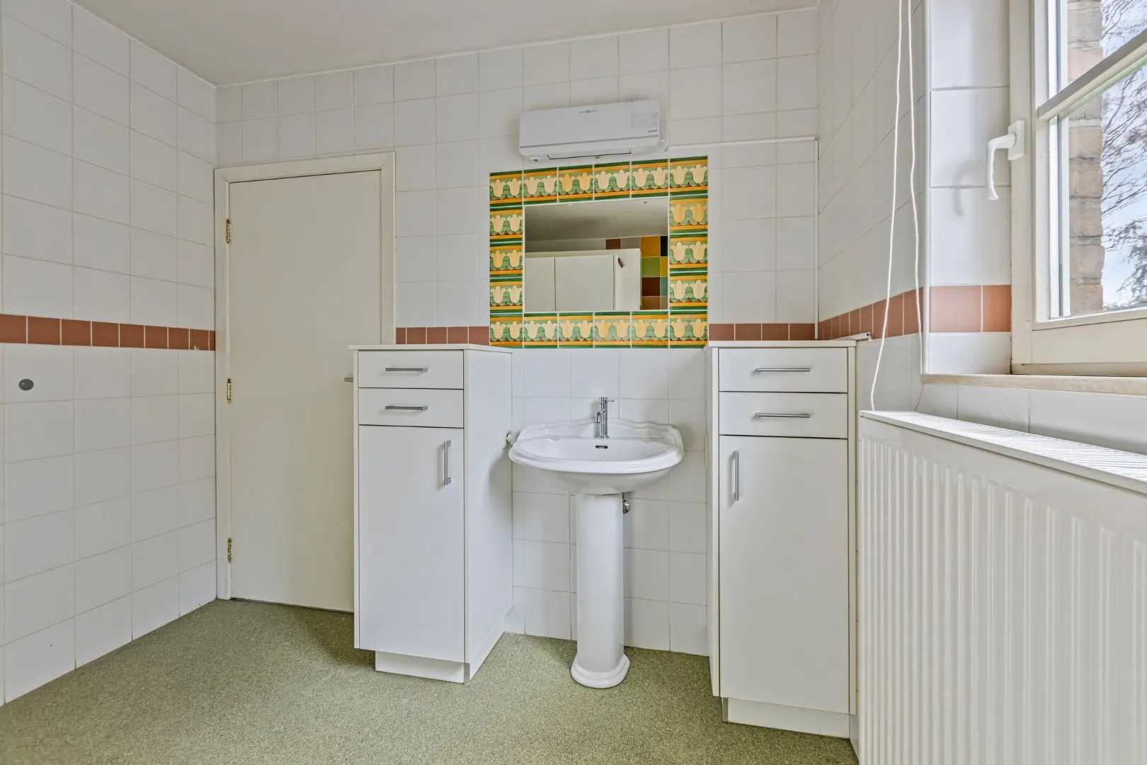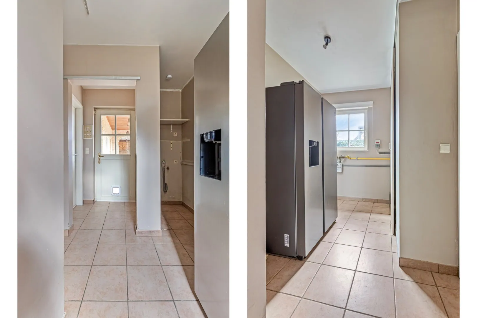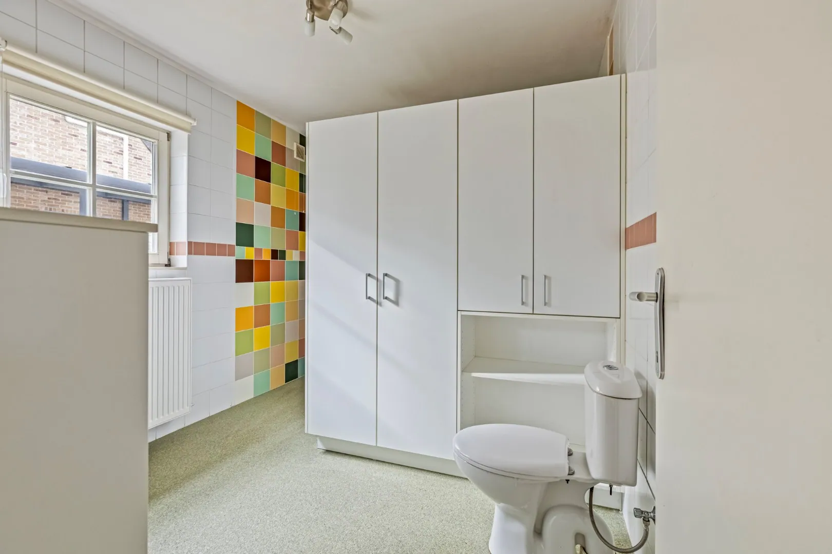 Verder vinden we op het gelijkvloers de praktische wasplaats/berging en de badkamer, voorzien van toilet, wastafel en een inloopdouche die vernieuwd werd in 2025.