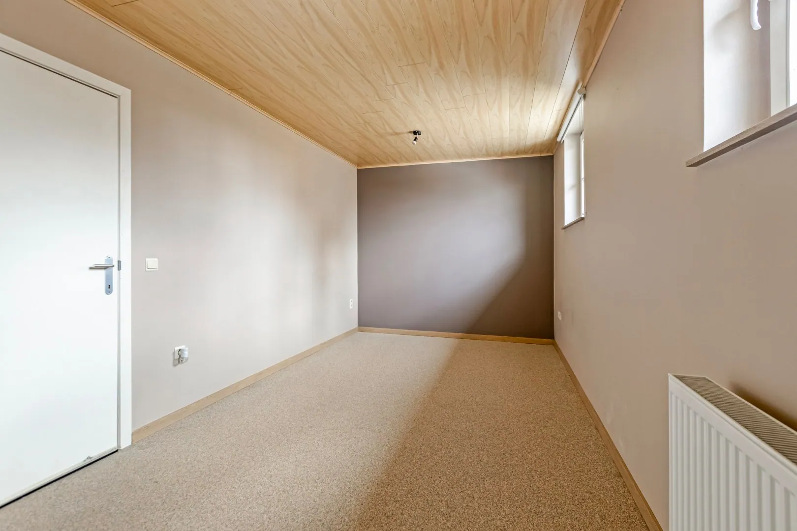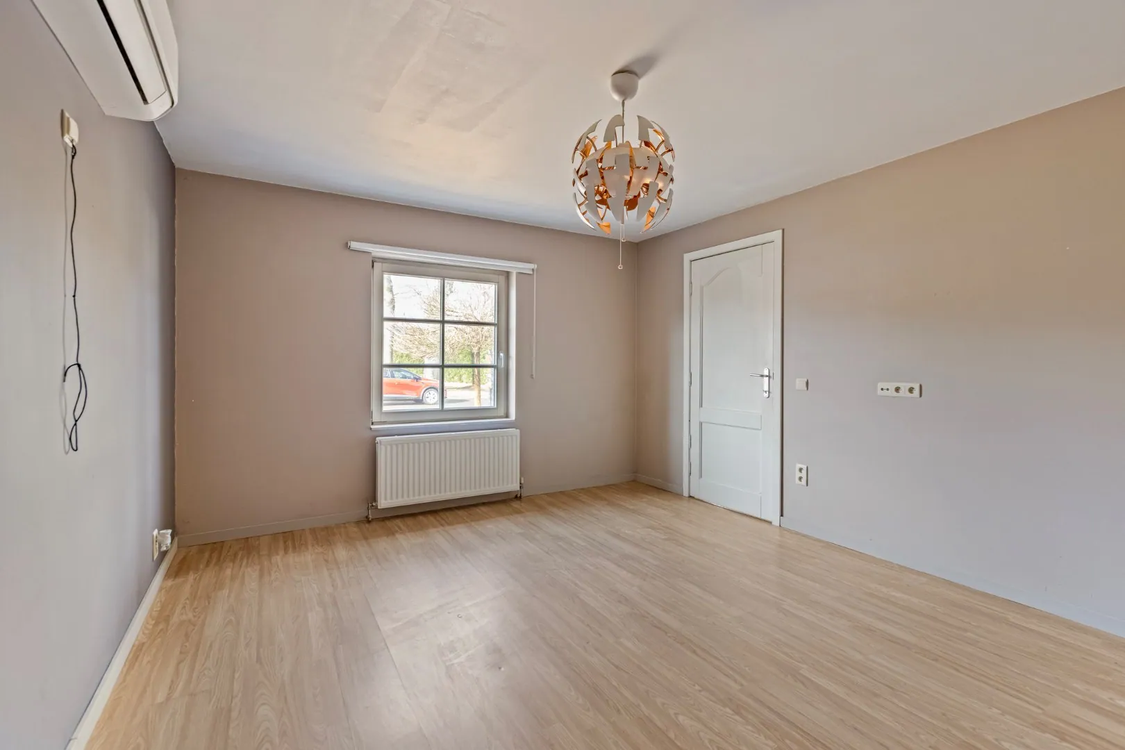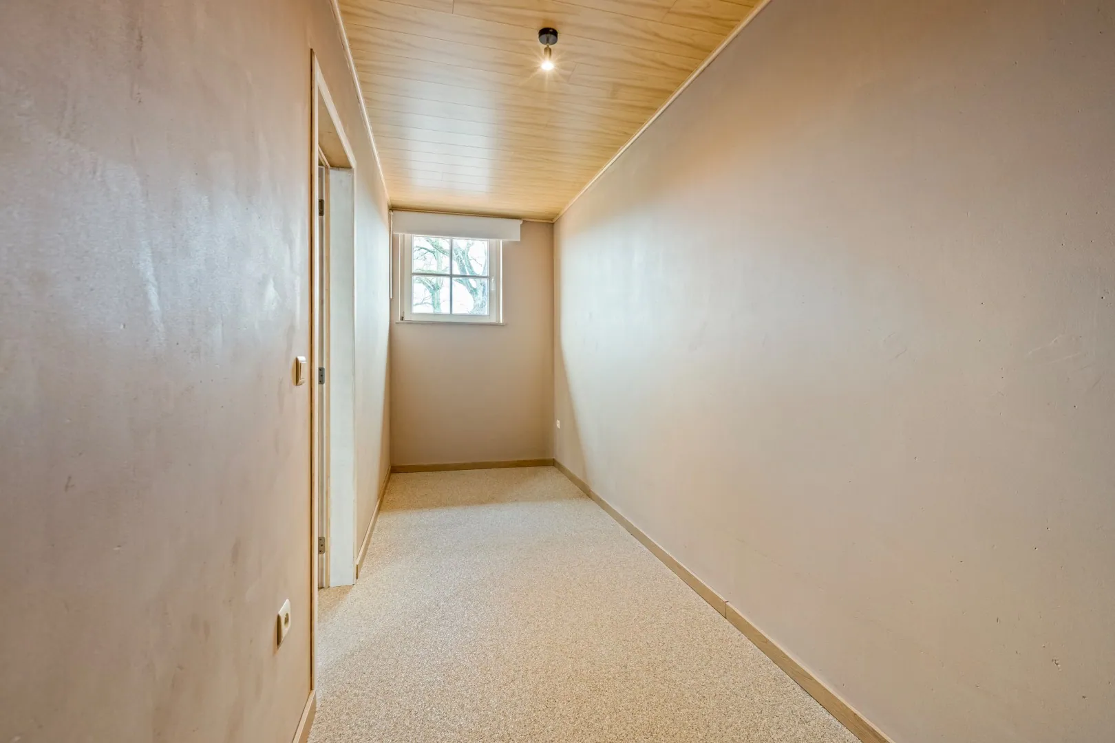 Via de vaste trap in de inkomhal bereiken we de eerste verdieping, waar zich twee ruime slaapkamers bevinden. Eén van de slaapkamers beschikt over een aanpalende ruimte die perfect kan ingericht worden als dressing of bureau.