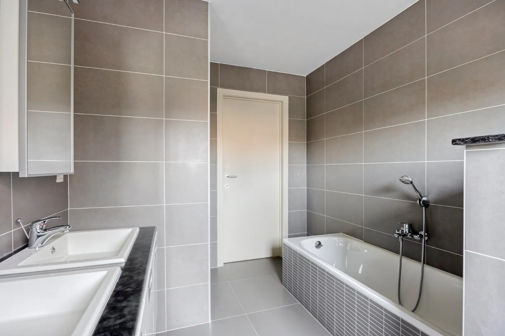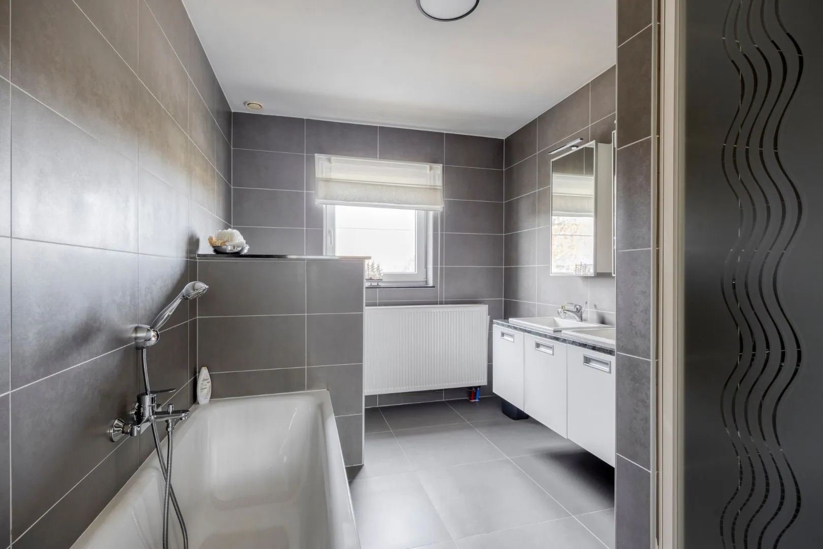 Op de eerste verdieping bevinden zich drie ruime slaapkamers en een badkamer met bad, toilet, dubbele lavabo en inloopdouche.
