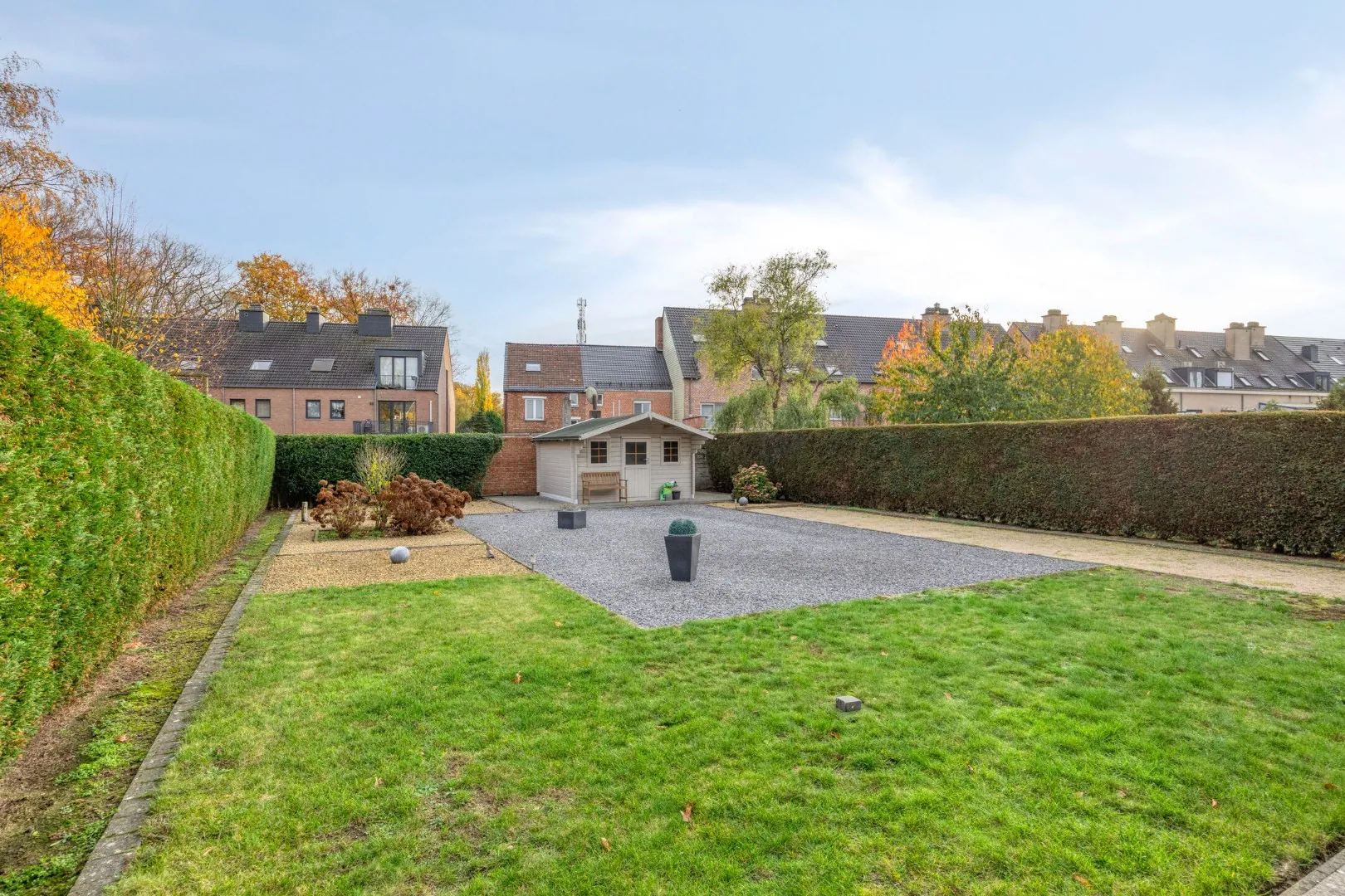 Buiten kan men volop genieten van het buitenleven op het zuidgerichte perceel van 592 m² met terras.