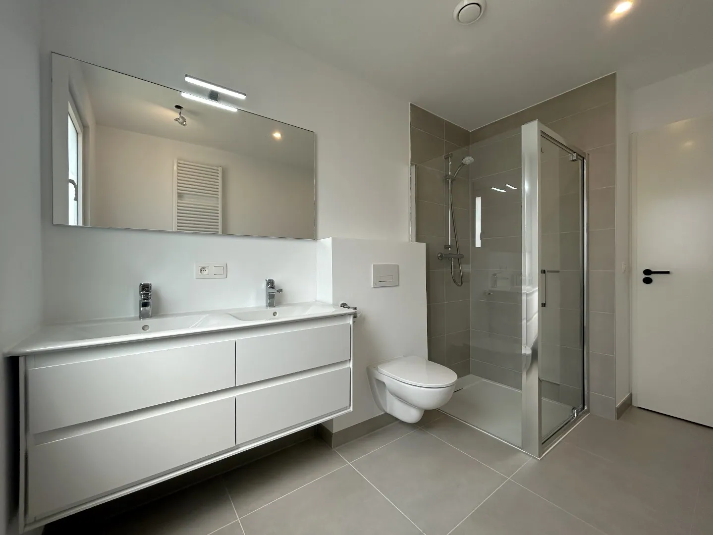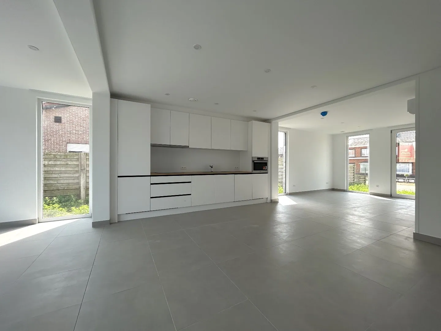 Elke woning beschikt op het gelijkvloers over een ruime, lichtrijke woonkamer met een volledig uitgeruste open keuken, een apart gastentoilet en een berging. Via de houten trap in de woonkamer bereikt u de eerste verdieping, die drie slaapkamers en een badkamer met badkamermeubel, toilet en douche herbergt. Vanuit de woonkamer heeft u toegang tot een ruim terras van 18m² en de tuin, waar u volop van het buitenleven kunt genieten.