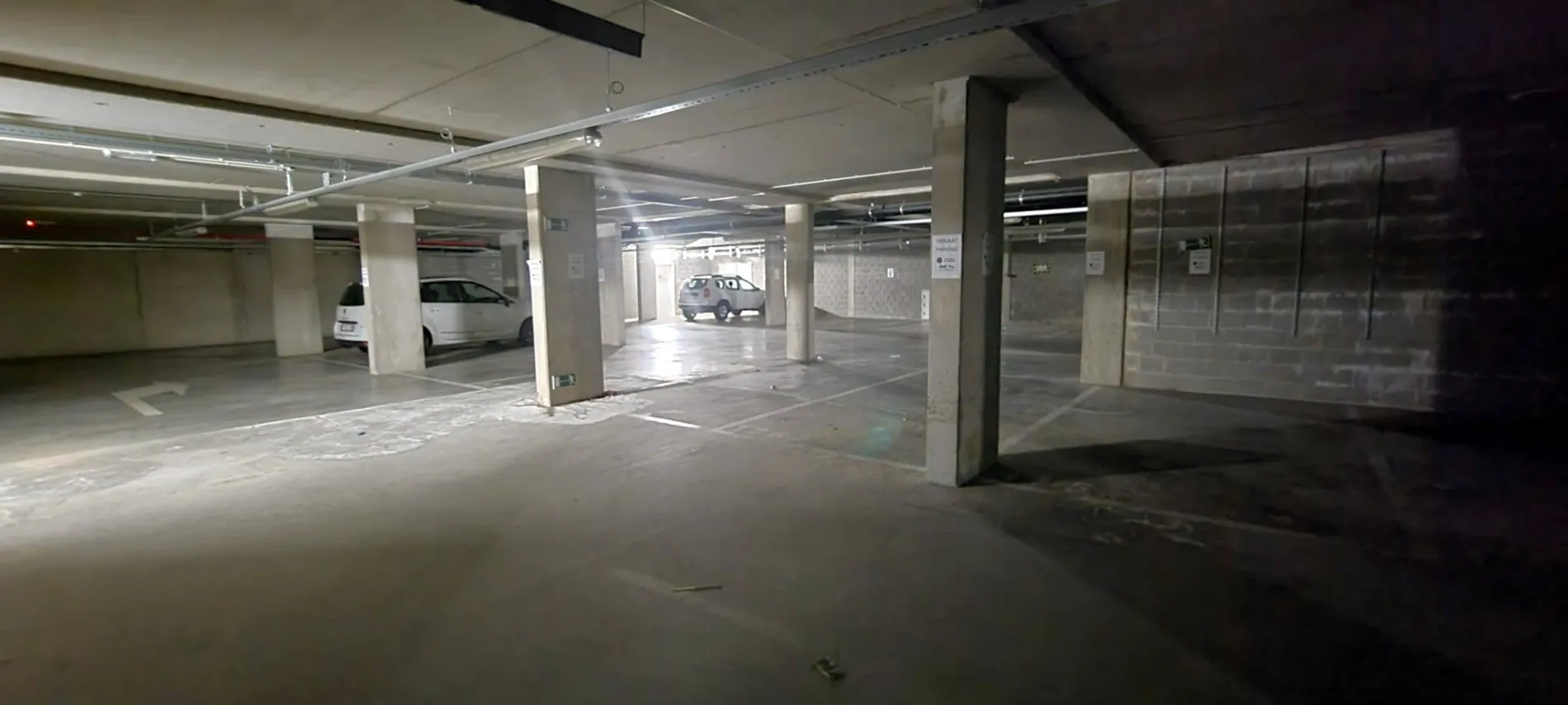 Bij elk appartement is er een autostaanplaats en een kelderberging verplicht bij aan te kopen aan € 20.000. Als extra troef is er een gemeenschappelijke fietsenberging aanwezig in de kelder. Deze is bereikbaar met de lift en voorzien van 2 stopcontacten per appartement.